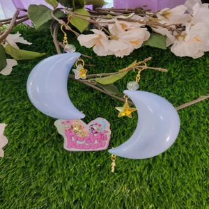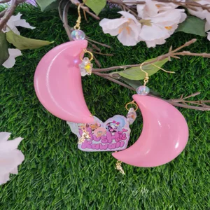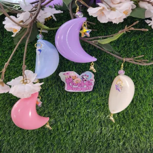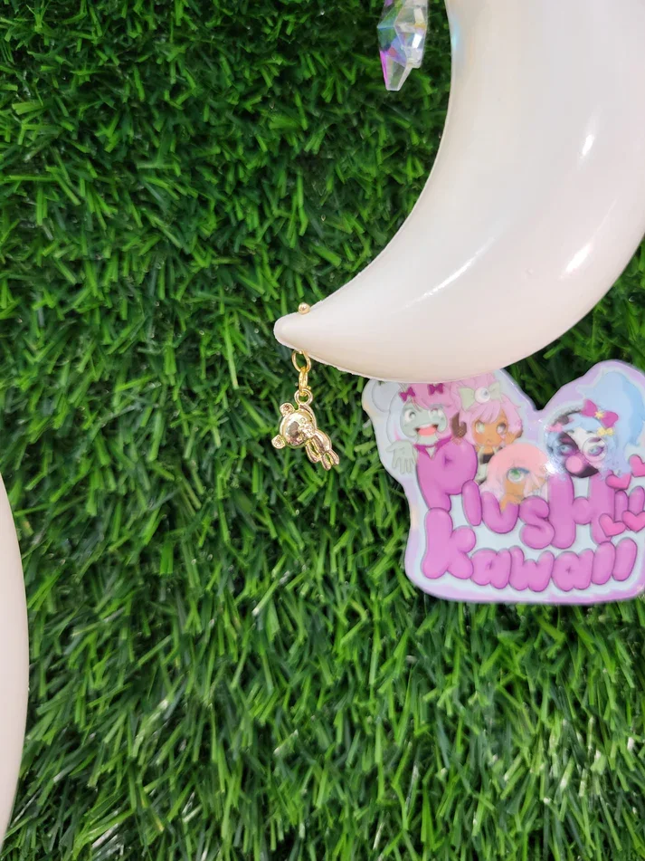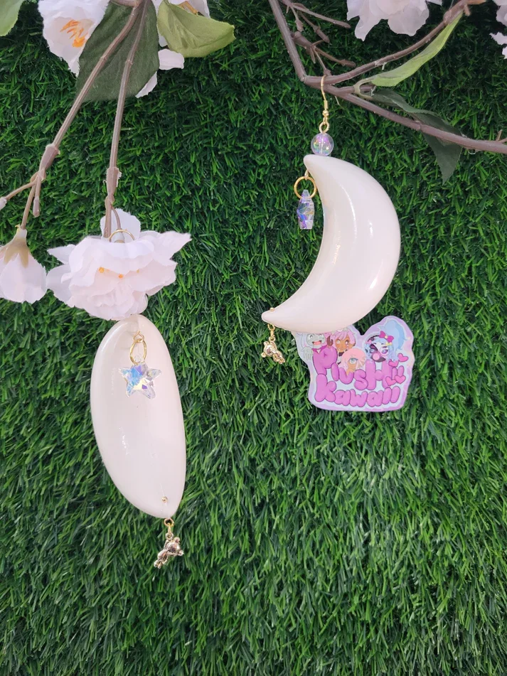 The oversized earrings are surprisingly light despite their size and are decorated with a faceted crystal star, AB bubble bead and tiny golden bear holding on as the moon carries him into the land of dreams.