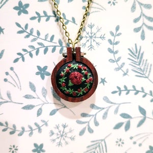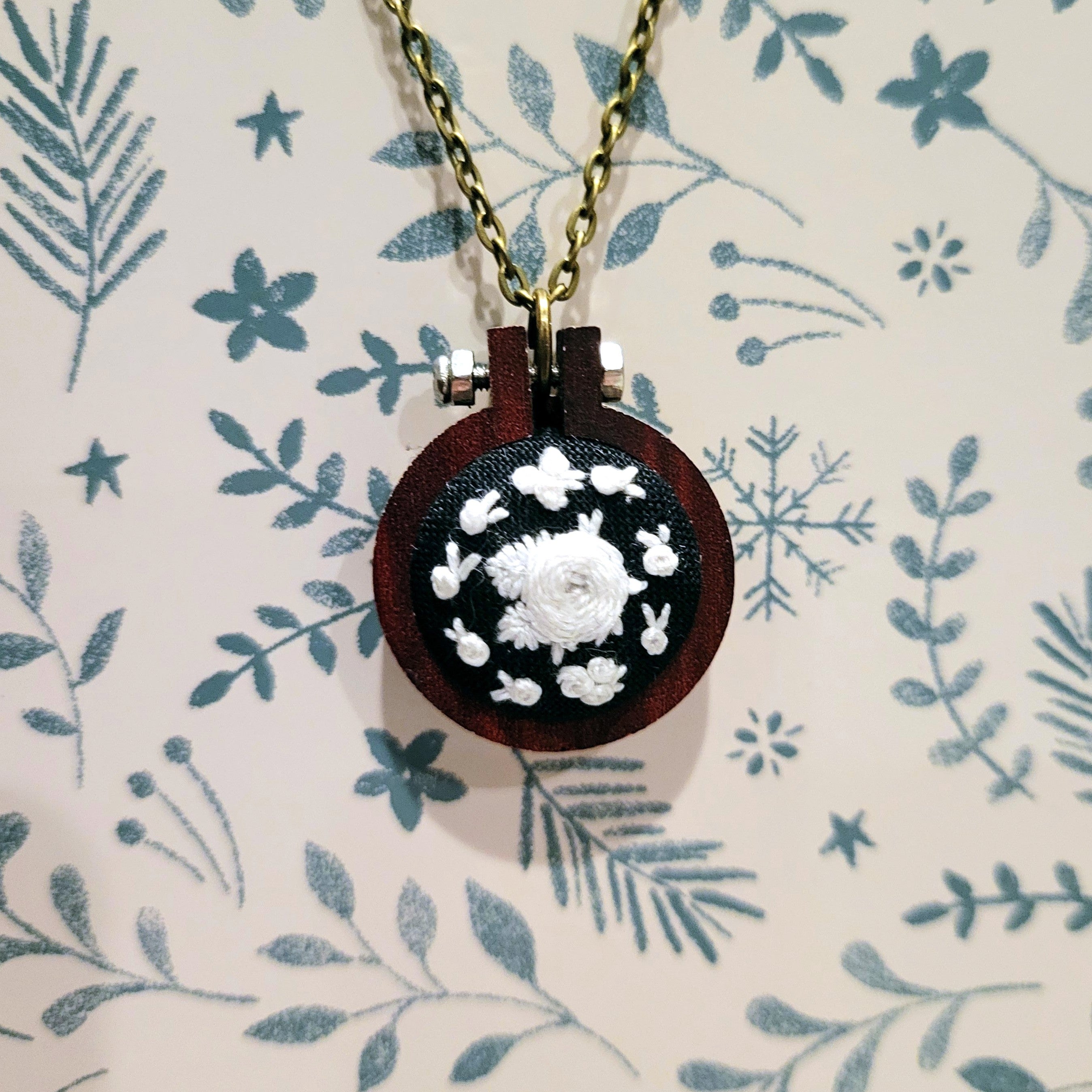 Rainey Regalia ~ Rose Ring Mini Embroidery Frame Necklace