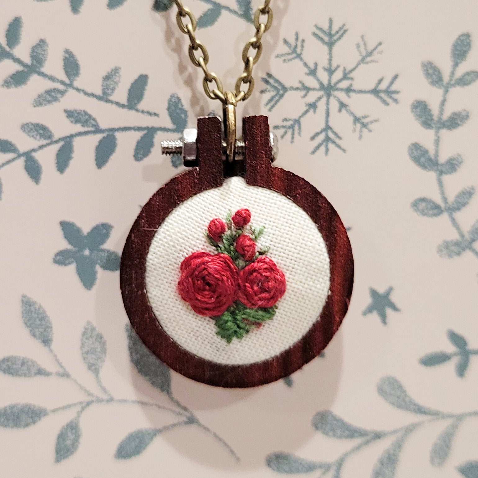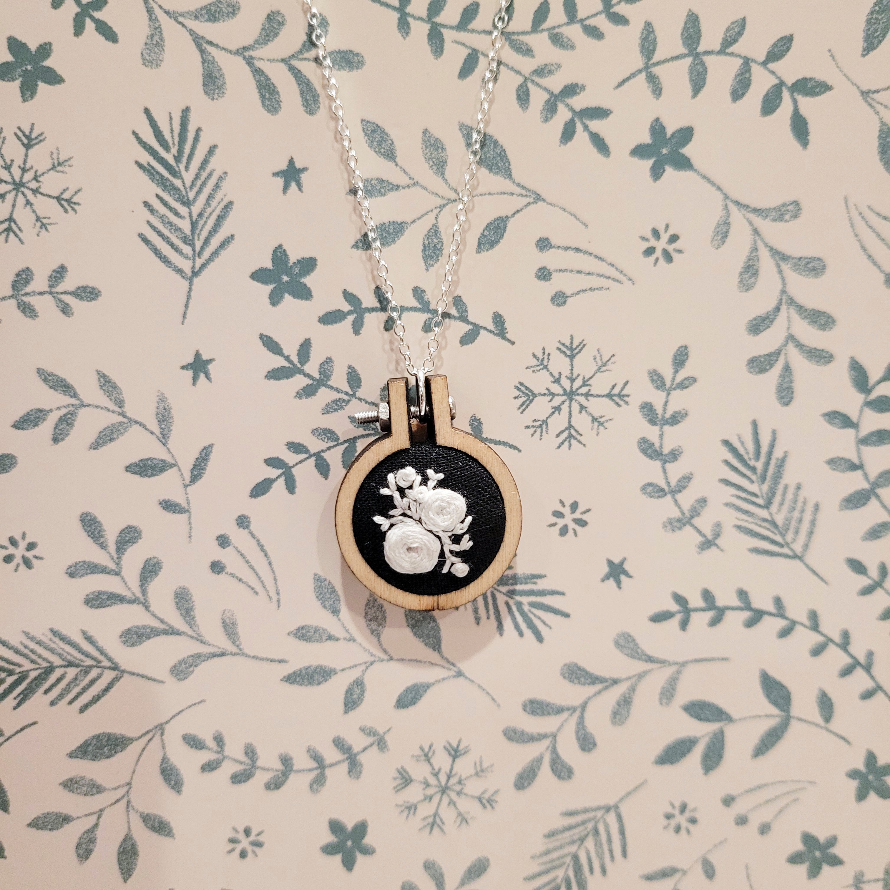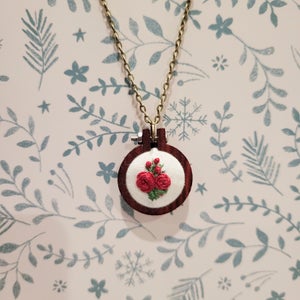 Rainey Regalia ~ Rose Spray Mini Embroidery Frame Necklace