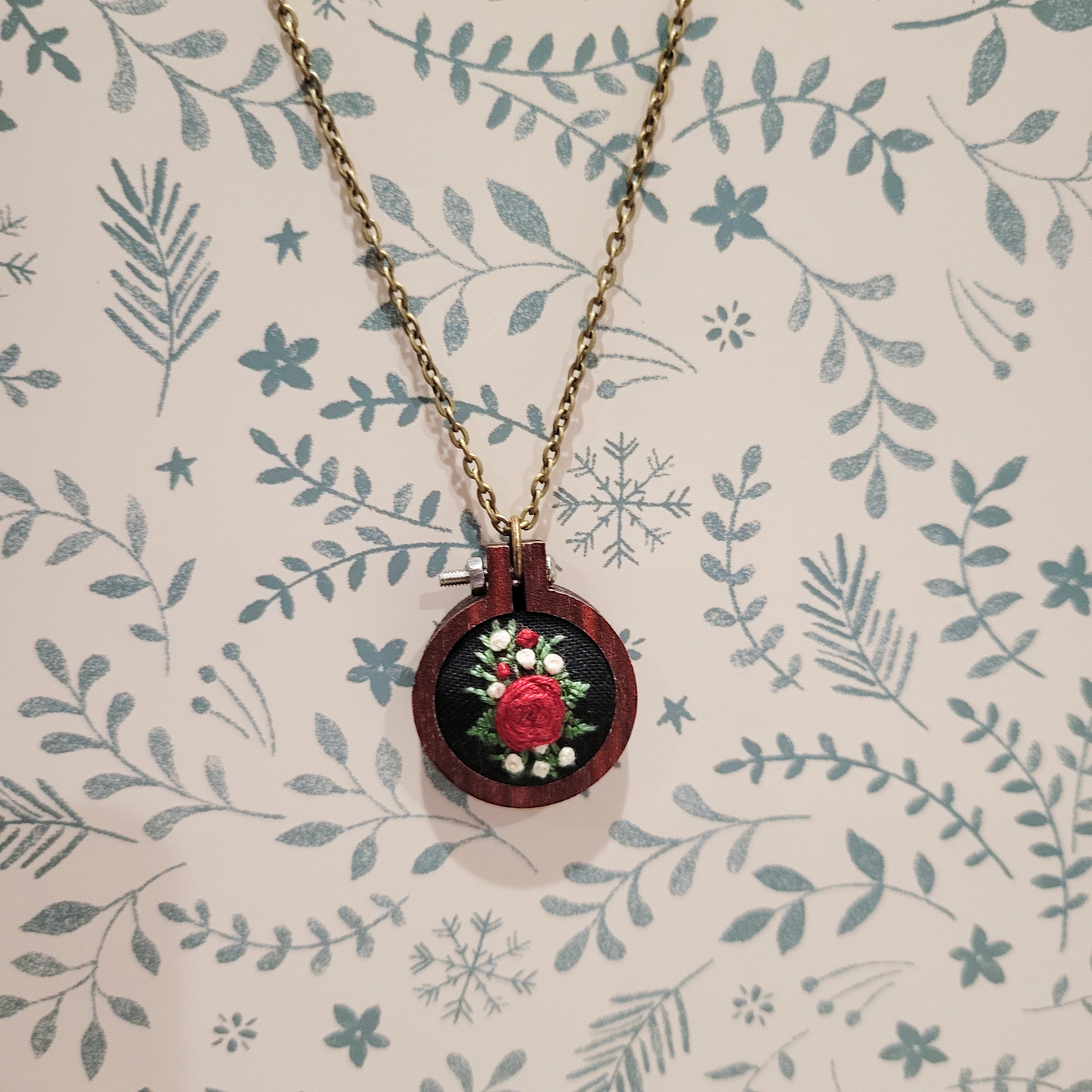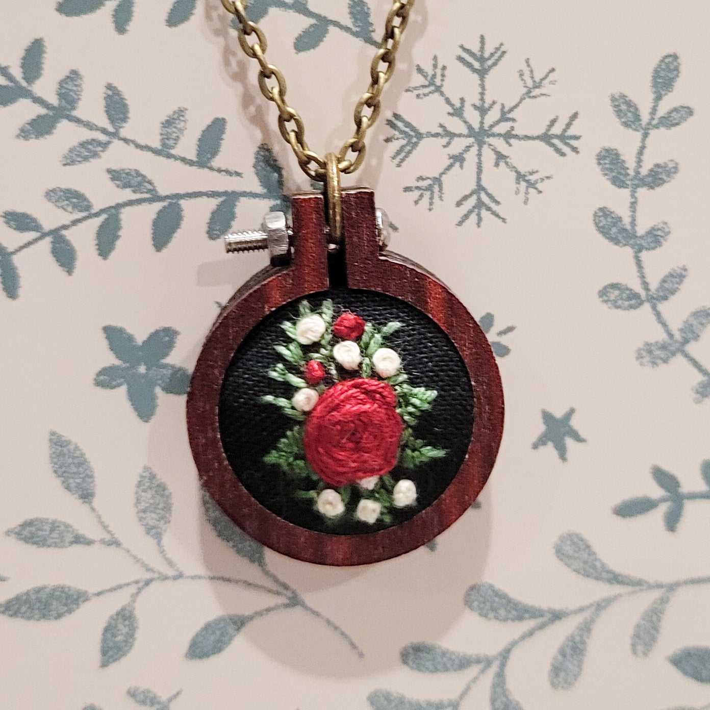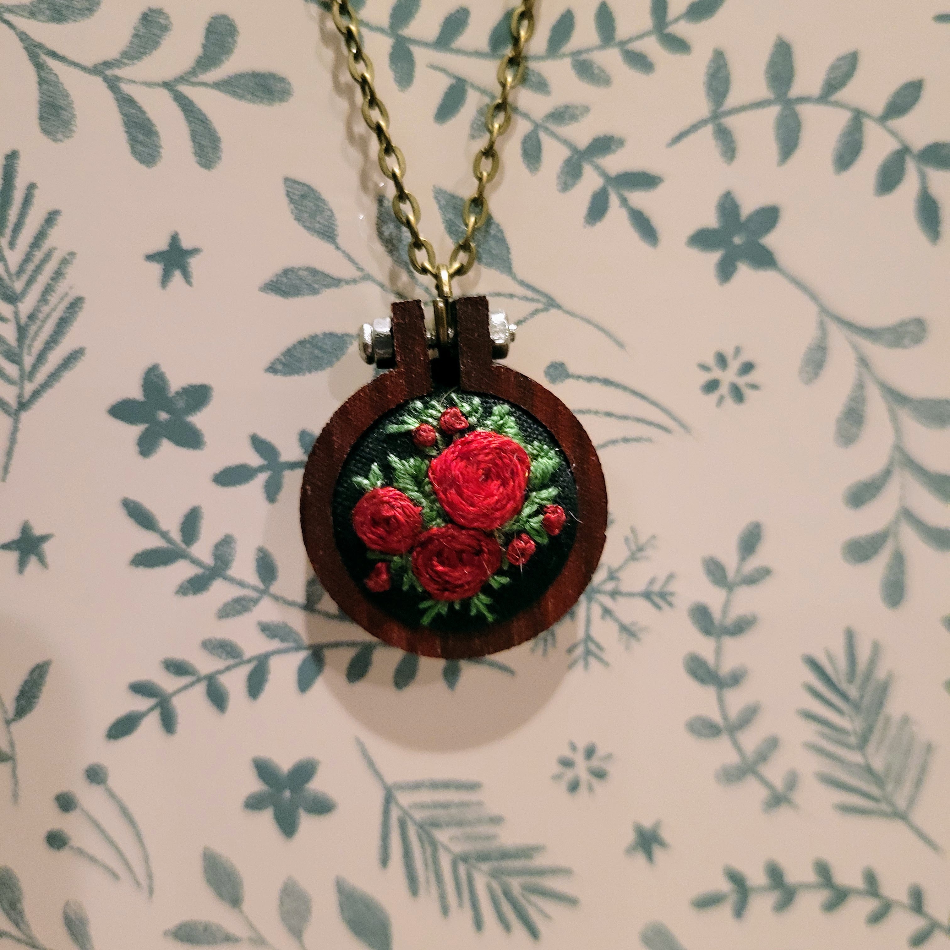 Rainey Regalia ~ Roses Jubilee Mini Embroidery Frame Necklace