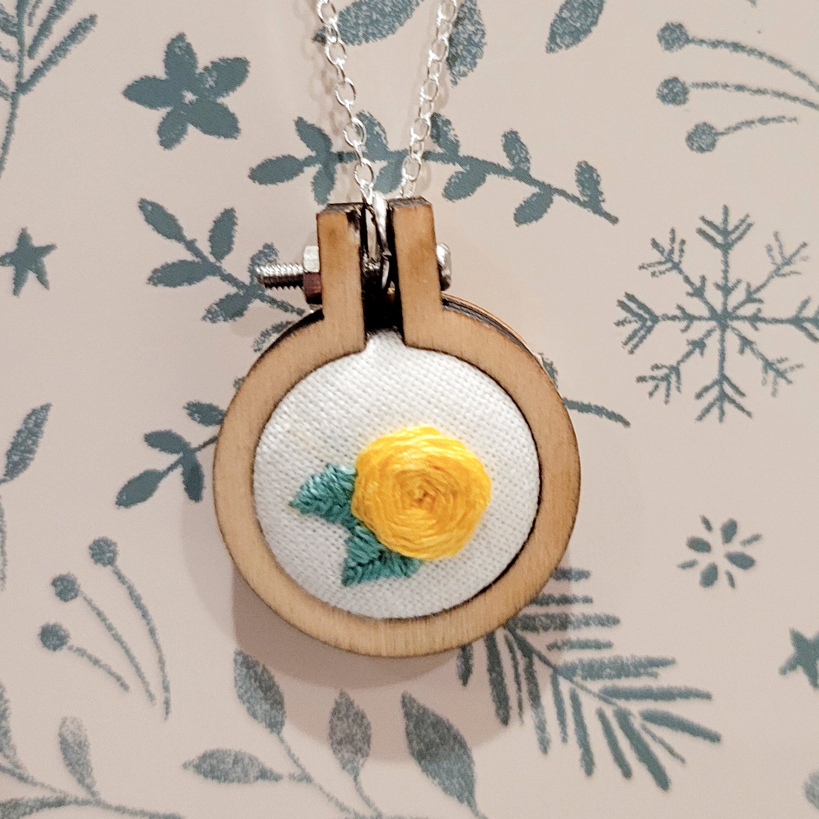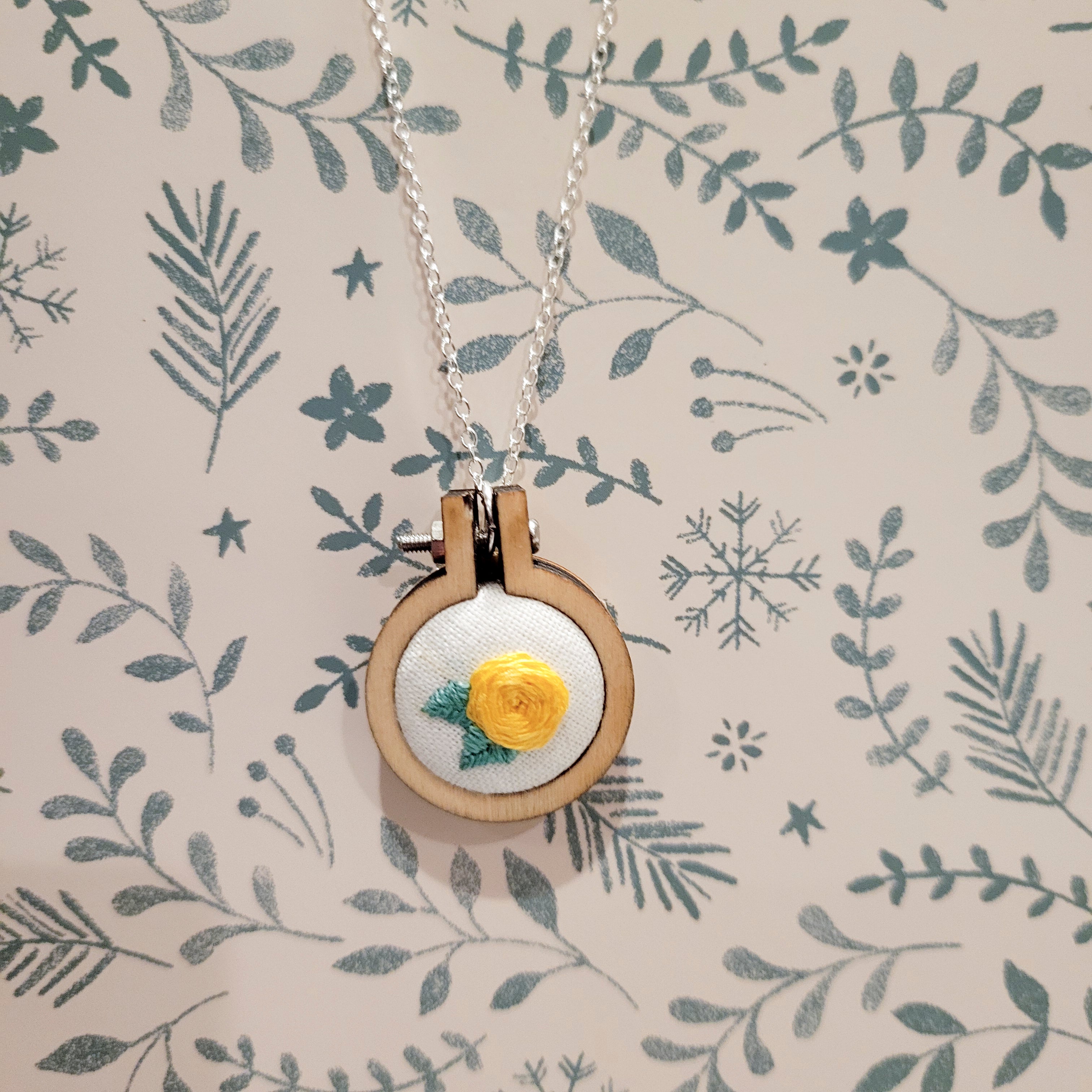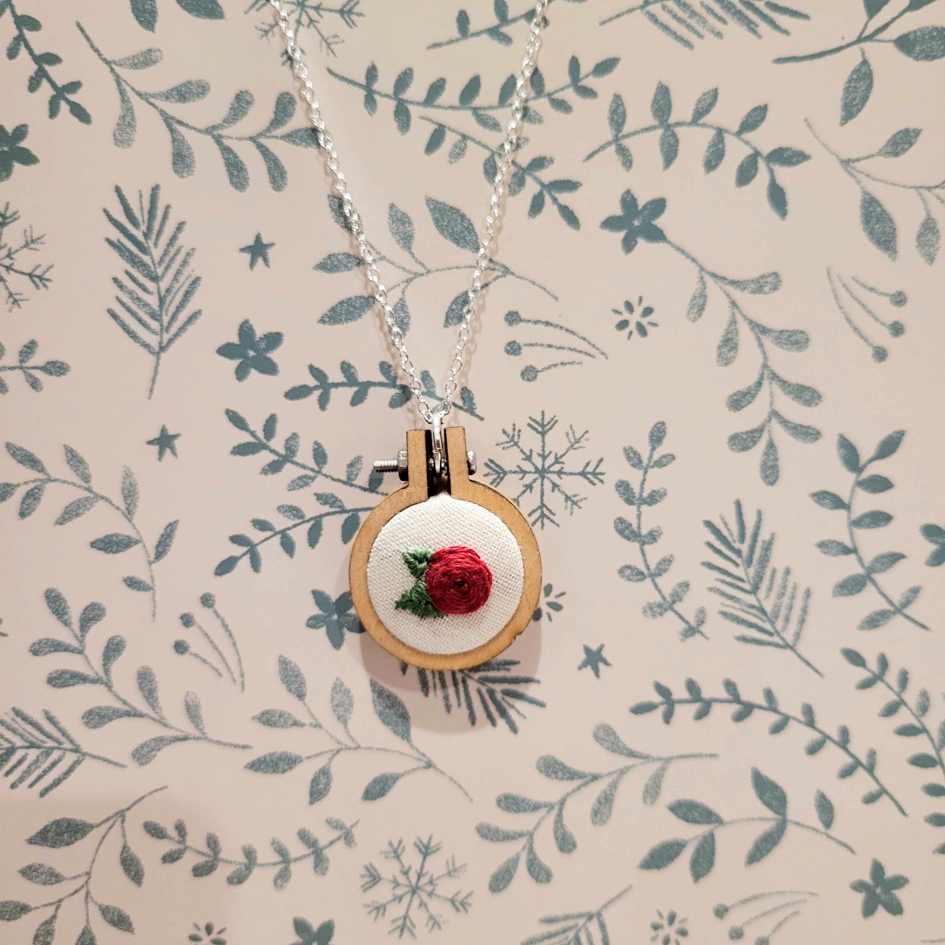 Rainey Regalia ~ Sweet Rose Mini Embroidery Frame Necklace