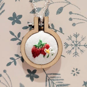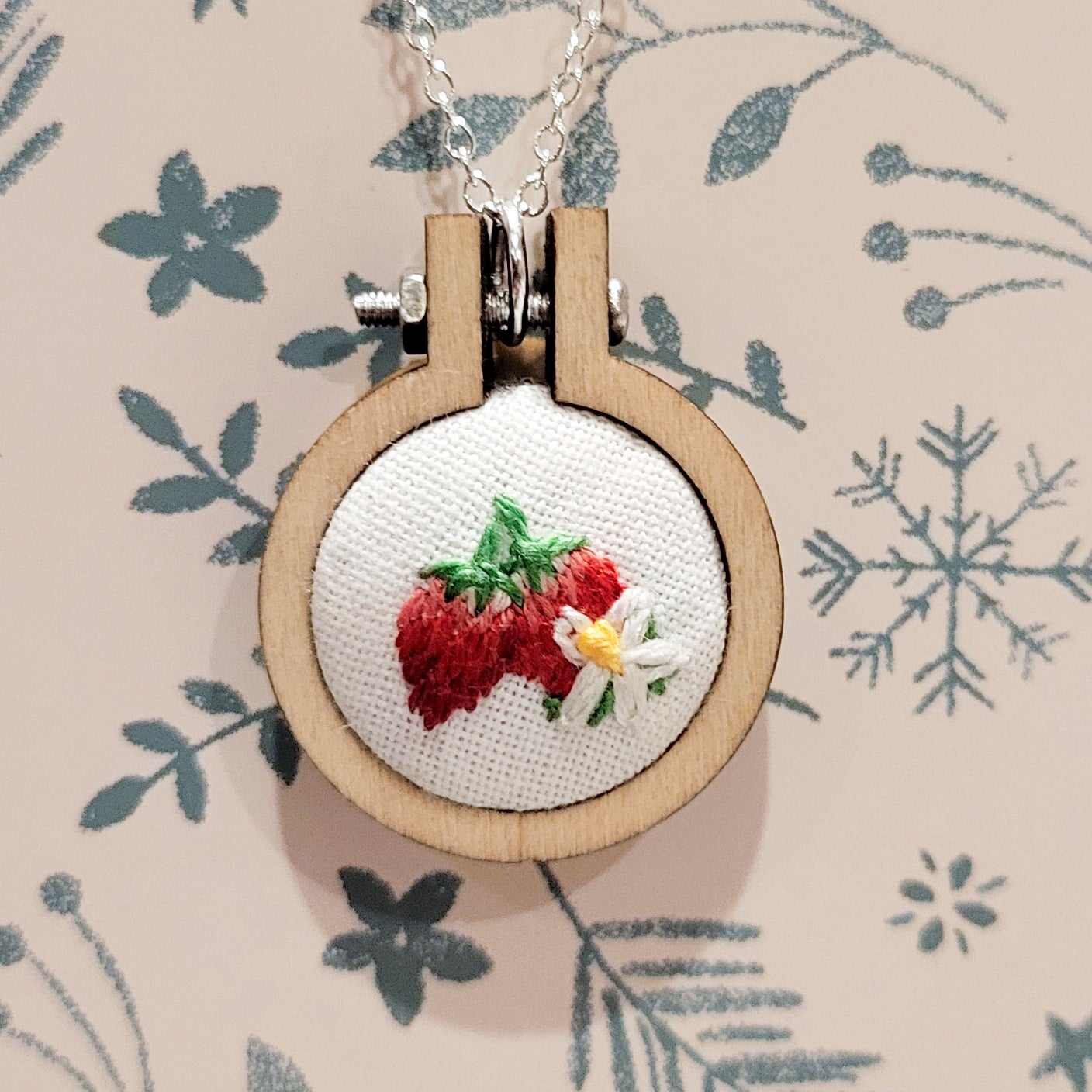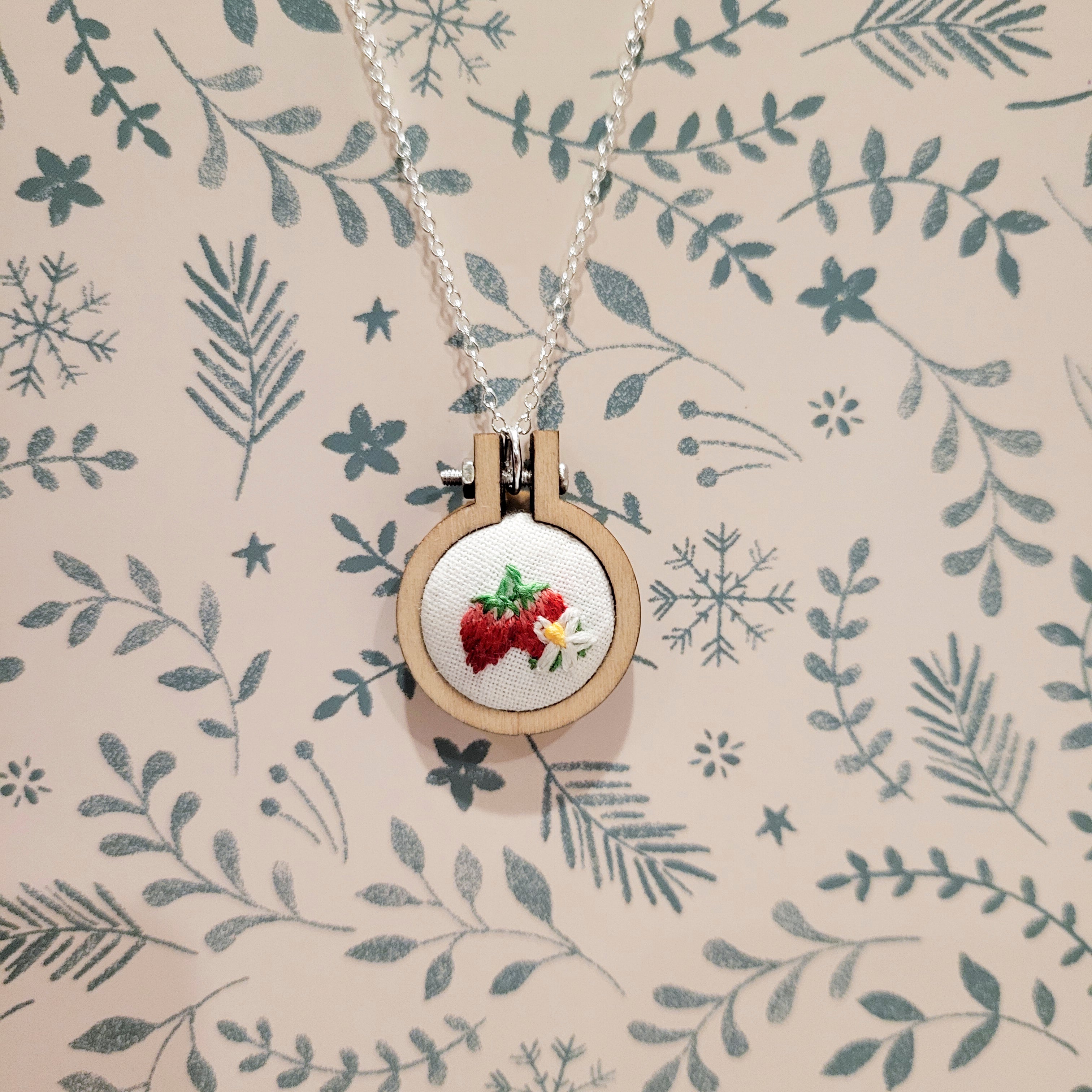 Rainey Regalia ~ Tiny Berry Mini Embroidery Frame Necklace