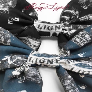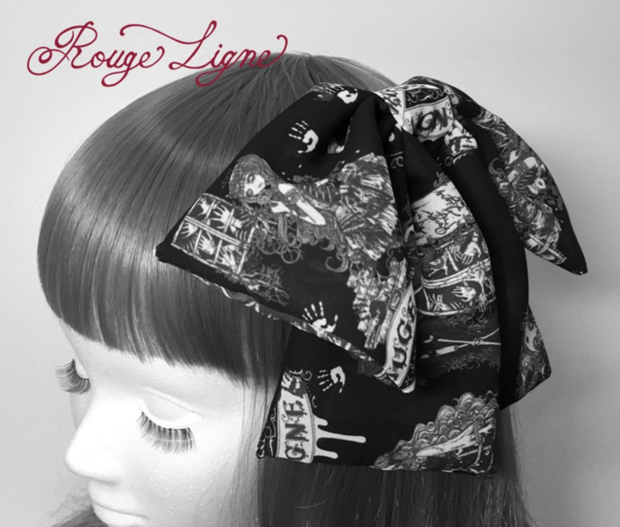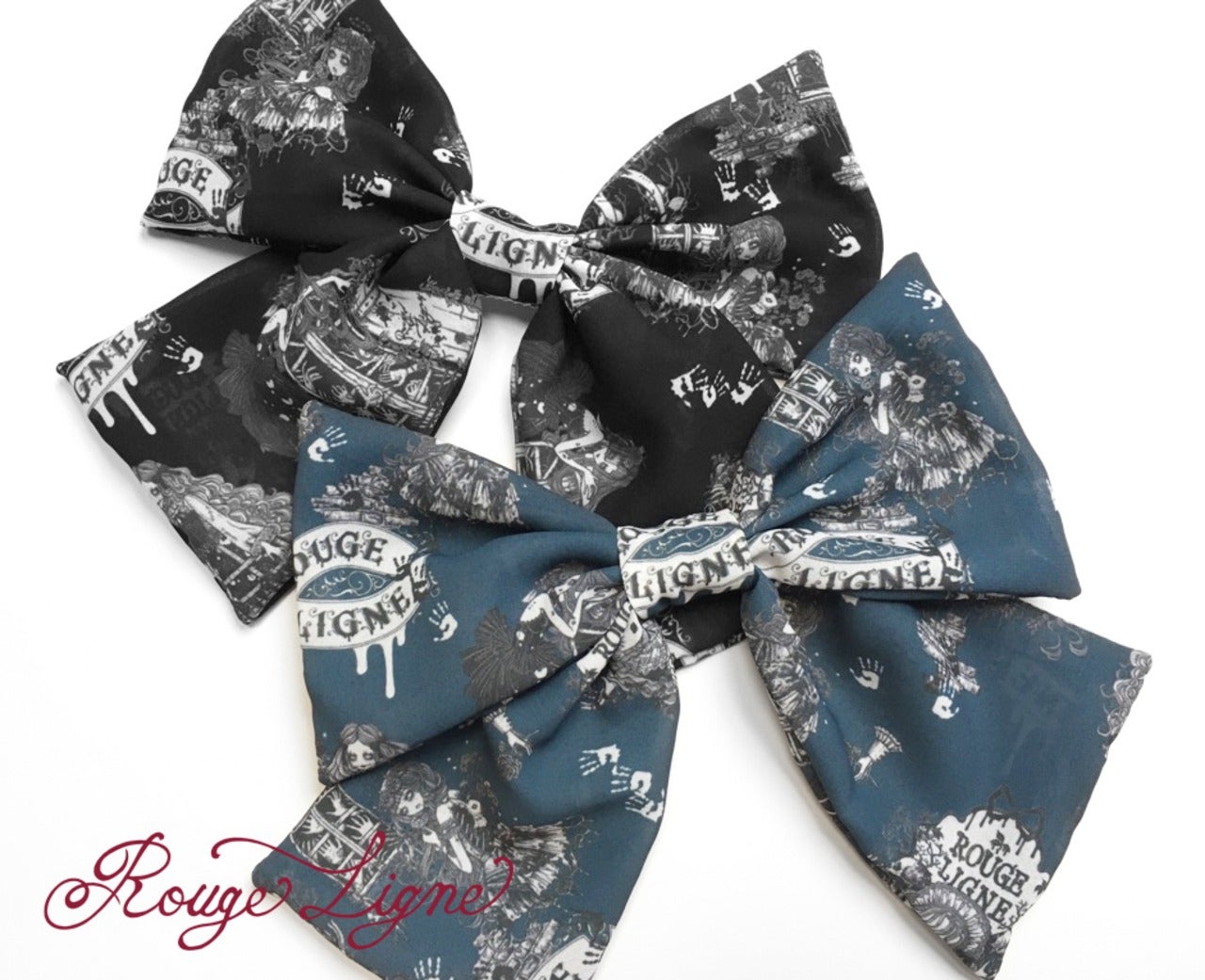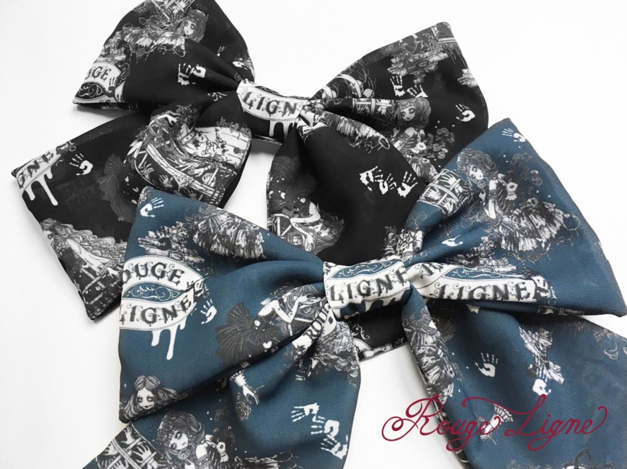 A beautiful red that stands out against monochrome. A powerfully captivating red. Even in death, Wandering in search of beauty... This ribbon pin brooch clip features a full-pattern of the zombie-themed "Four Dead Girls" from the dark collection. At first glance, the ribbon appears cute, but upon closer inspection, the dark world of the zombie girls emerges. Made of beautiful, sheer, high-quality chiffon fabric. Available in two colors: black and moss green. Comes with both a brooch and clip, so you can attach it to your outfit or enjoy it as a hair accessory. The look changes depending on where you pin it in your hair. One piece will expand your wardrobe versatility. It's large and soft to the touch, making it cute.