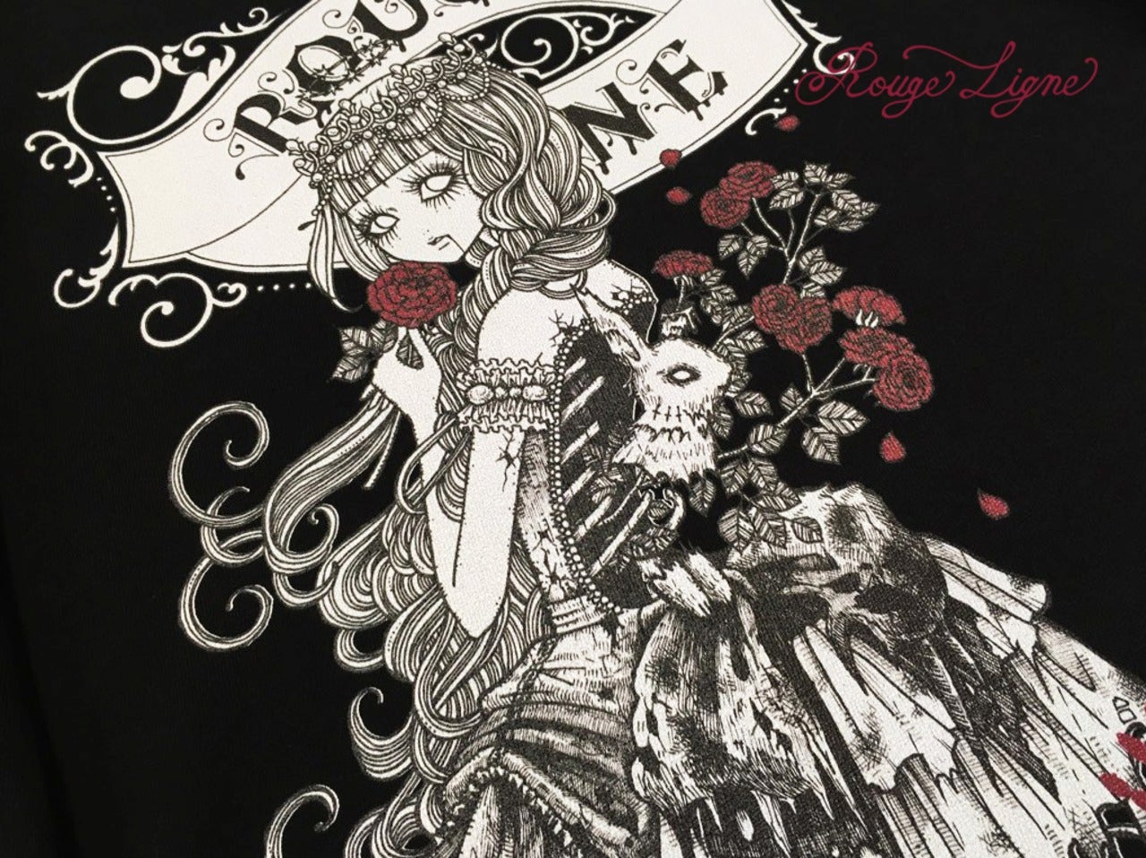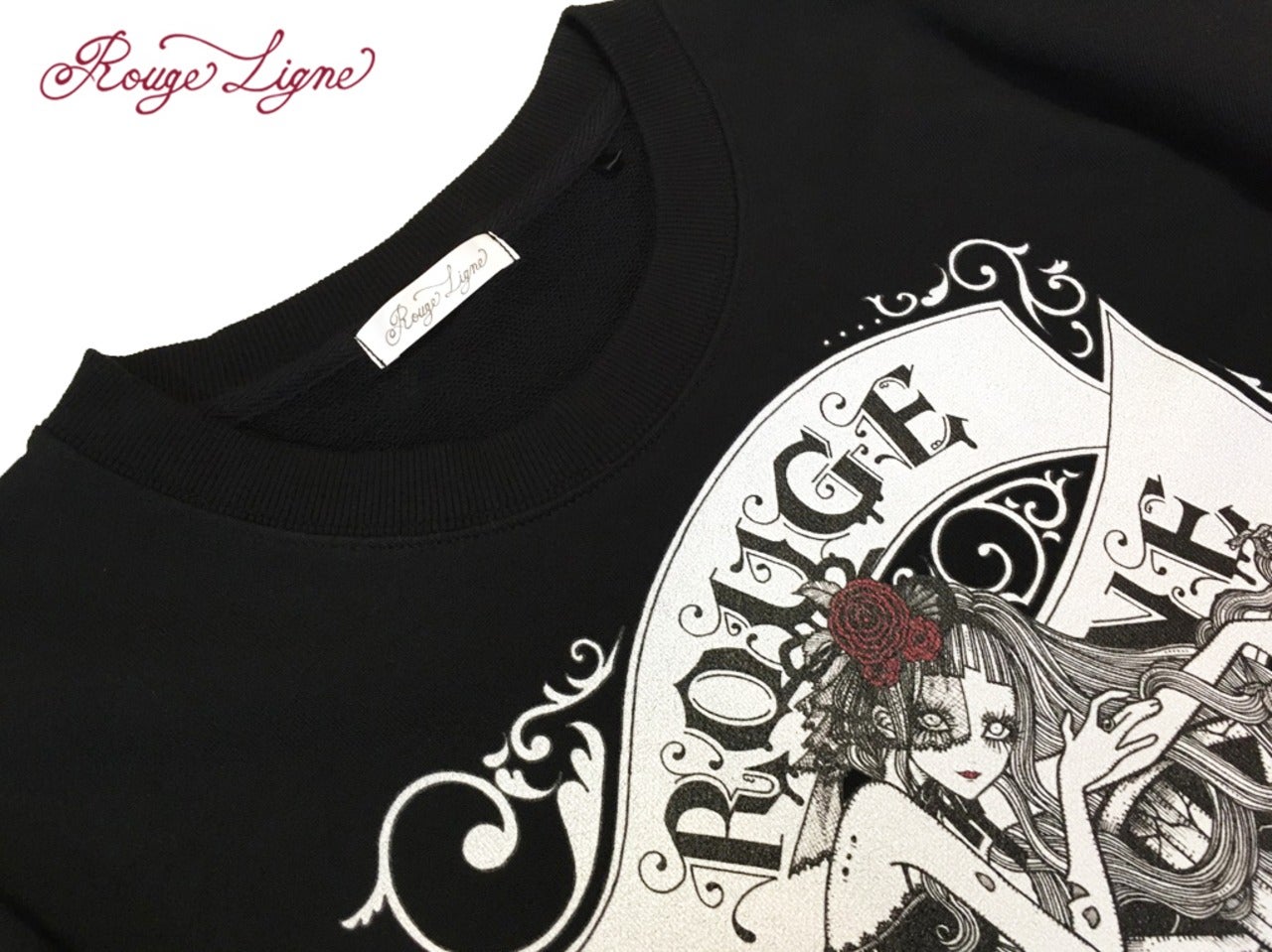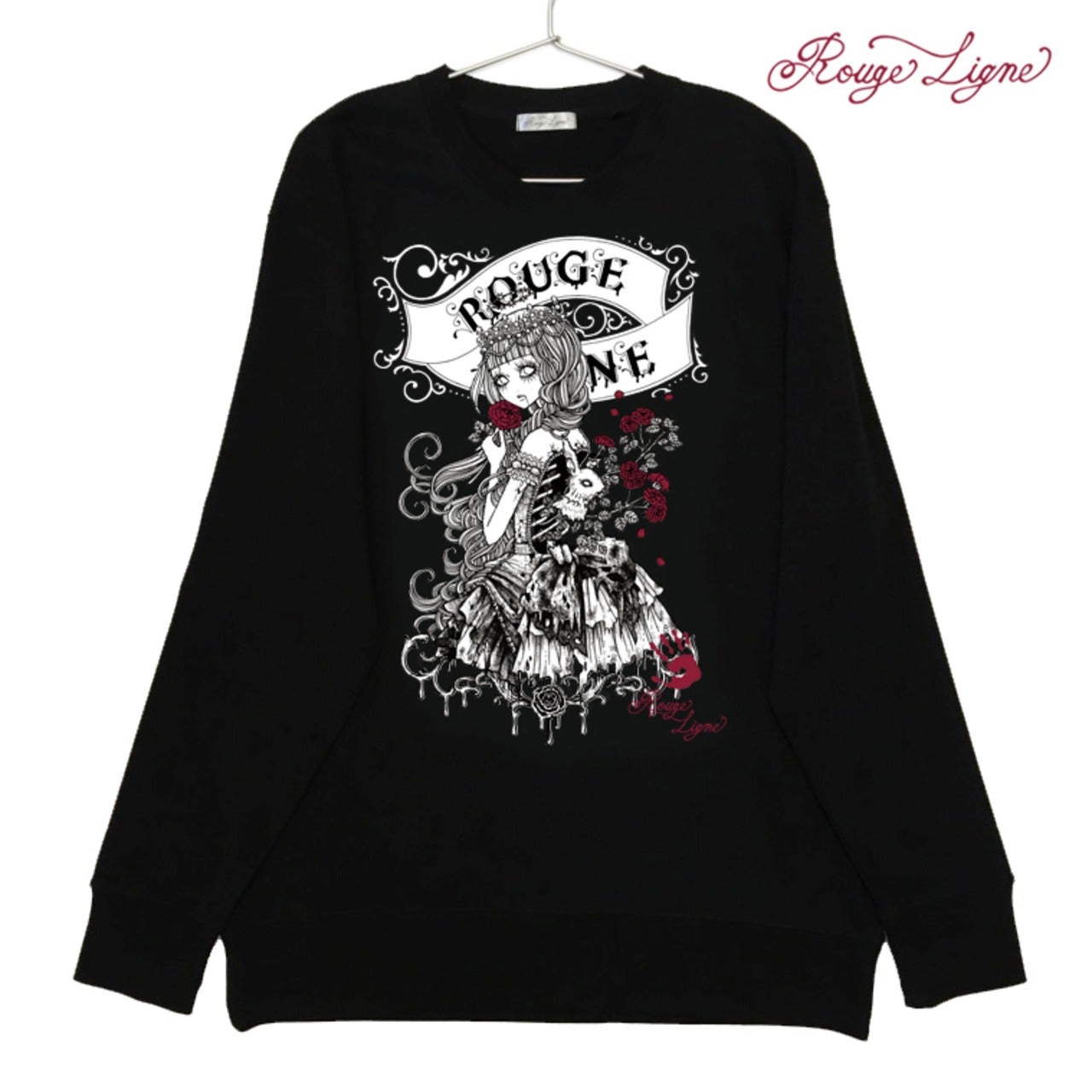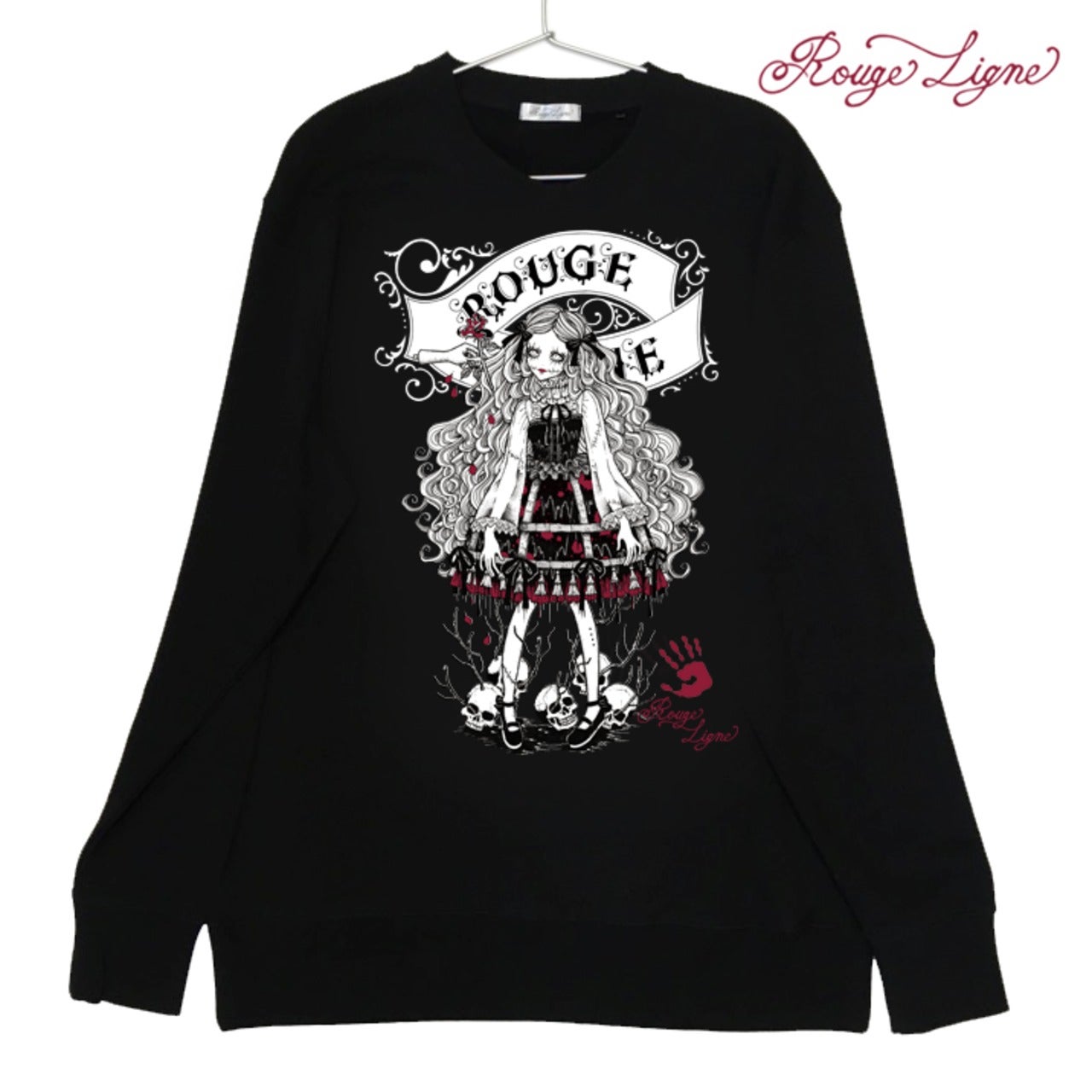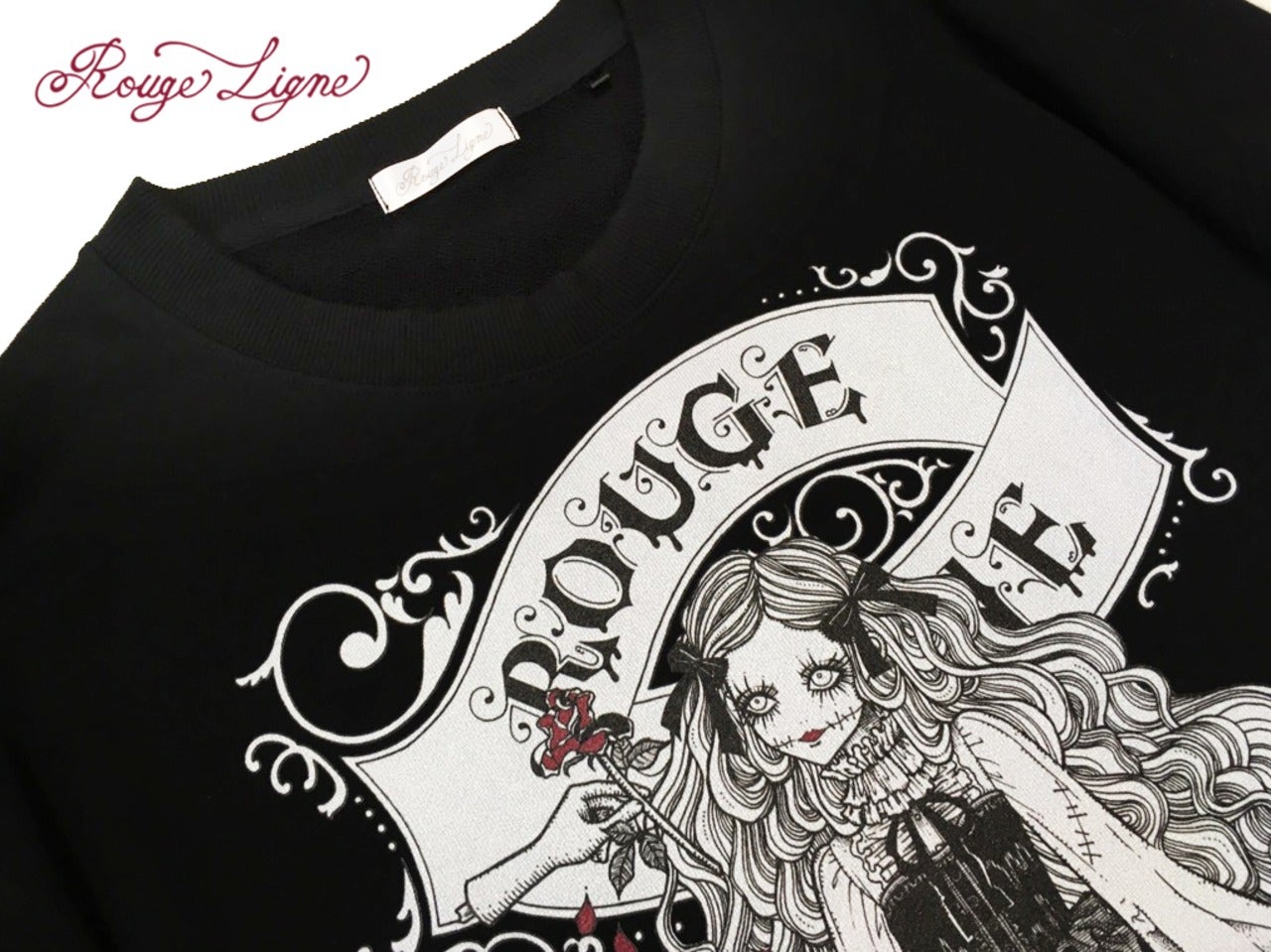 A popular sweatshirt, a winter staple. The inside of this crew neck sweatshirt features a fluffy, comfortable pile fabric. We recommend the XL size for a relaxed fit. The design is from the Dark Collection. The zombie-themed "Four Shibito Girls" One of the four: Rose A beautiful red that stands out against the monochrome. A captivating red. Even in death, Wandering in search of beauty...