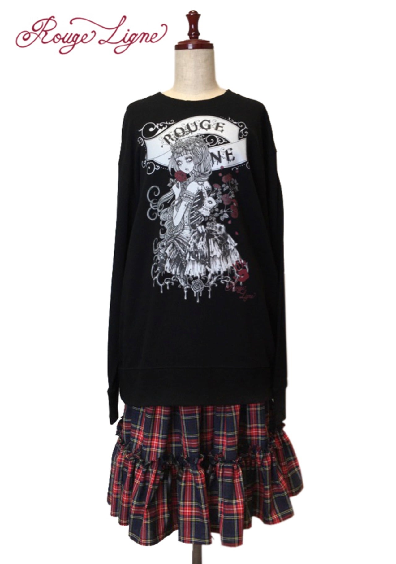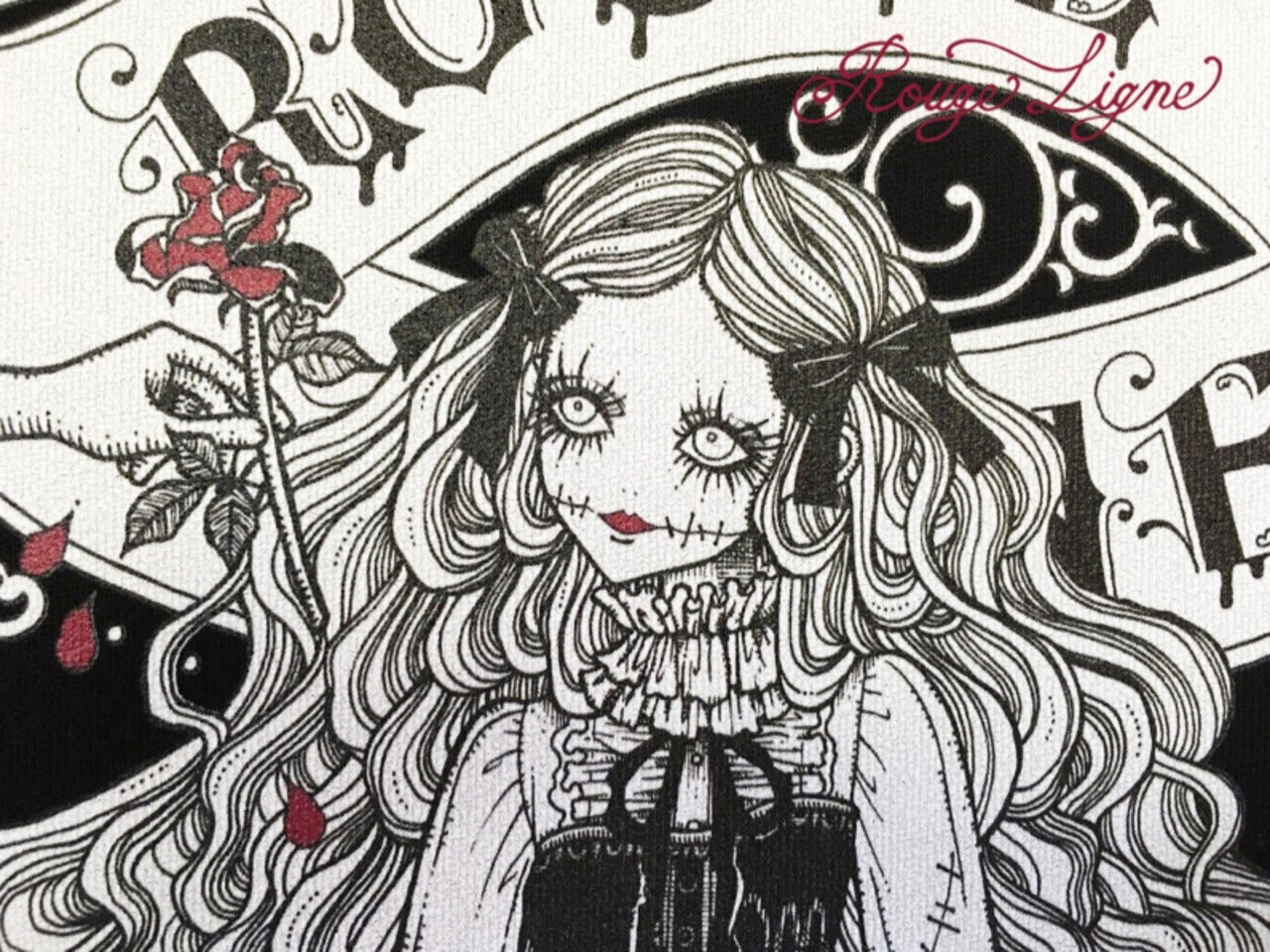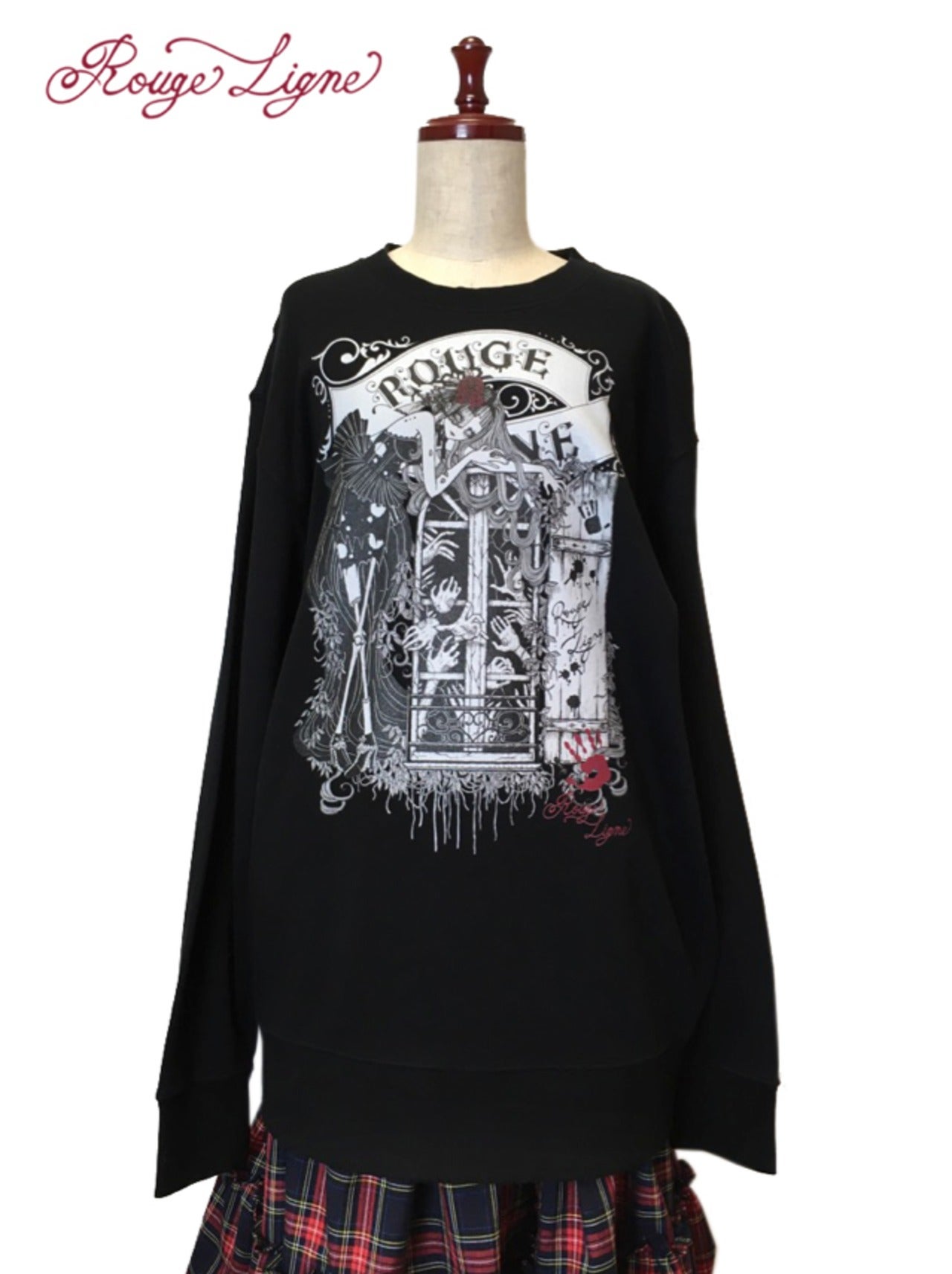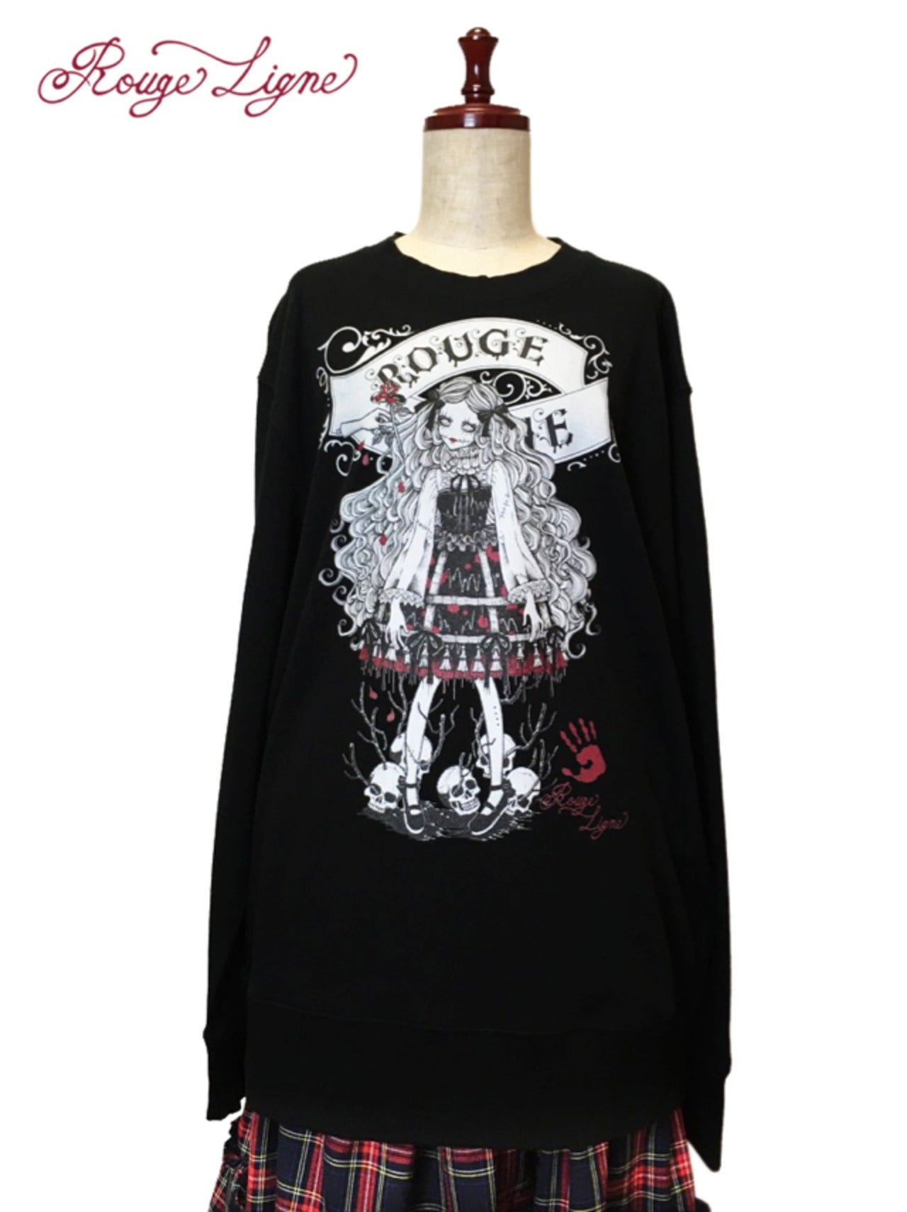 A popular sweatshirt, a winter staple. The inside of this crew neck sweatshirt features a fluffy, comfortable pile fabric. We recommend the XL size for a relaxed fit. The design is from the Dark Collection. The zombie-themed "Four Shibito Girls" One of the four: Rose A beautiful red that stands out against the monochrome. A captivating red. Even in death, Wandering in search of beauty...