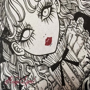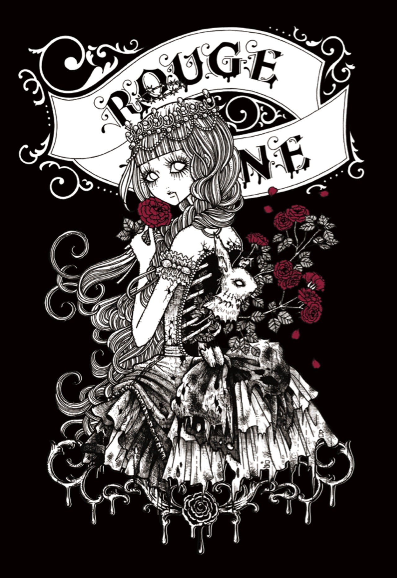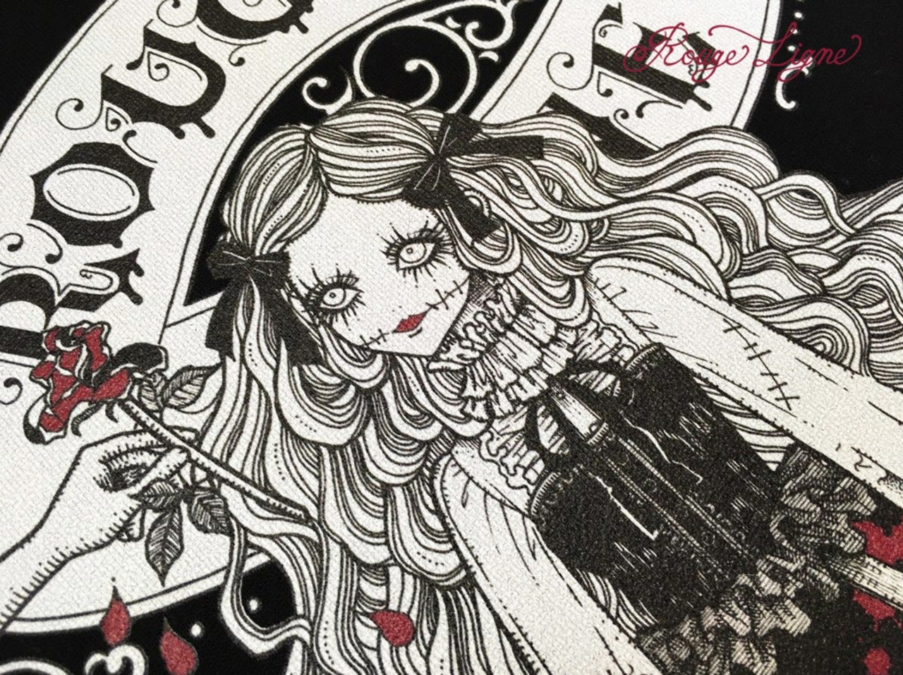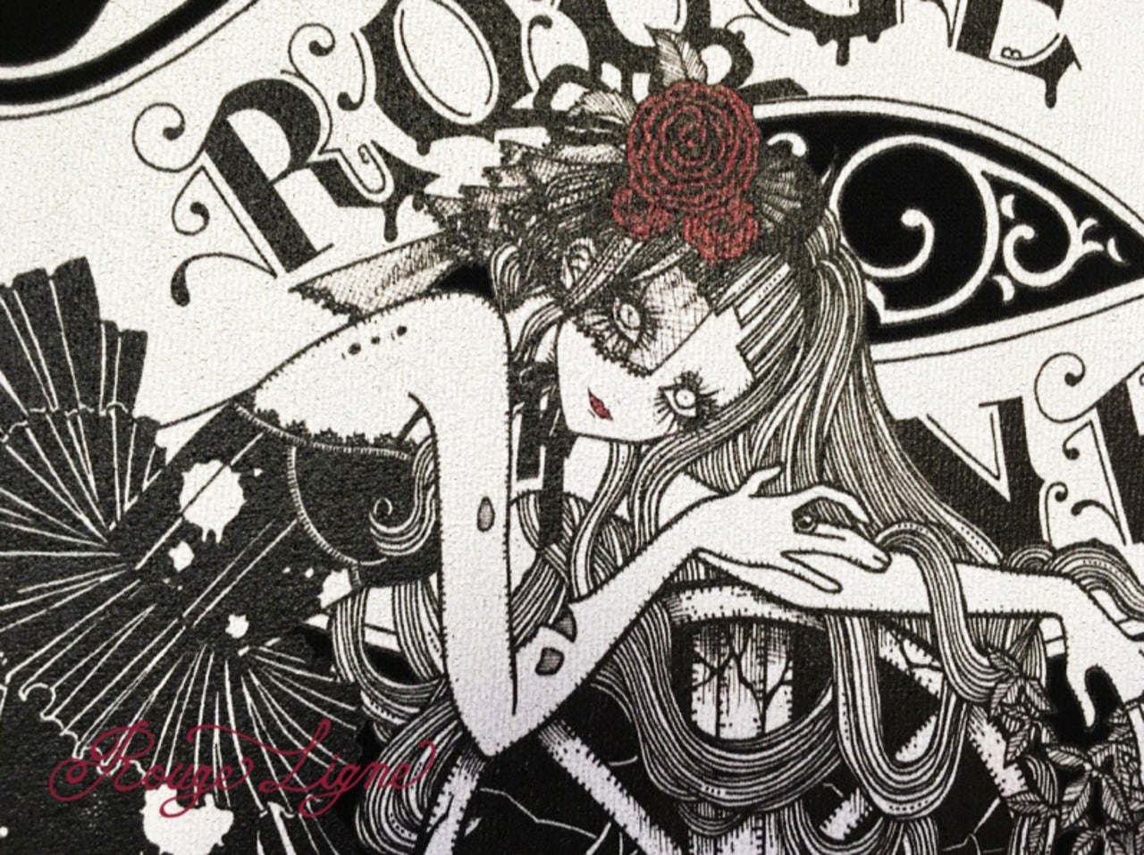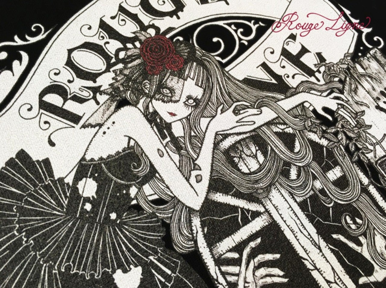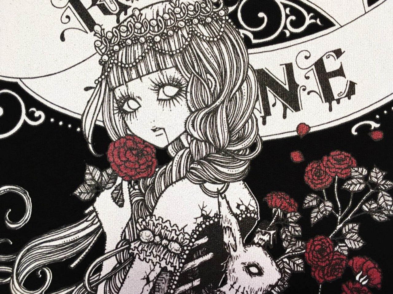 A popular sweatshirt, a winter staple. The inside of this crew neck sweatshirt features a fluffy, comfortable pile fabric. We recommend the XL size for a relaxed fit. The design is from the Dark Collection. The zombie-themed "Four Shibito Girls" One of the four: Rose A beautiful red that stands out against the monochrome. A captivating red. Even in death, Wandering in search of beauty...