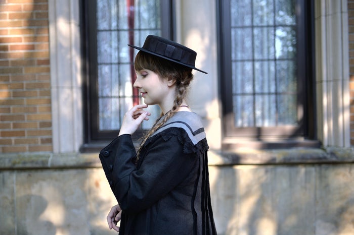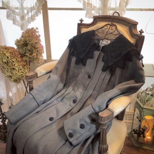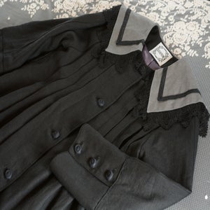 [Brand comment]The lines that spread from the tucks and the gentle raglan sleeves,The collar, inspired by angel wings, is made of delicate lace and gently hugs the shoulders. Black has a clean and noble feel. The lace lines on the collar add a nice touch. The gray is contrasted with the black collar, walnut buttons, and cord, giving it a sharp impression. It looks like a detachable collar and has a sailor-like feel at the back. The round double-shaped walnut buttons and the cord sandwiched between the seams are also highlights.