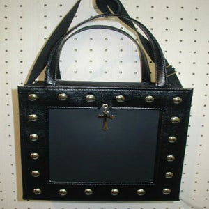 This square-shaped bag can be used as a shoulder bag or a handbag.