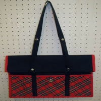 人気の2wayトートのチェックバージョン。ポケット部分がバイヤスのチェックになっていて、その中心にはティアラパーツがついています。回りは彩テープで配色パイピングしています。普段は蓋を折り曲げて、荷物の多いときはのばしてと、とっても便利なBagです。