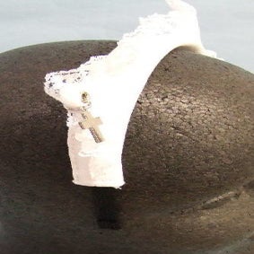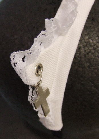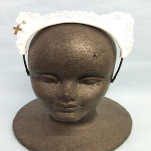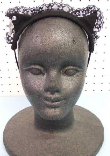 the frilly base like a waitress' headband into one with ears. I added a cross part to one ear like an earring.