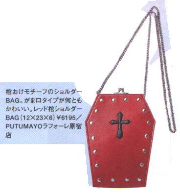 A cross is sewn in the center and the edges are studded with rivets in the shape of a coffin.