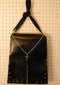 ☆ It has a raw cut finish and features a cross and black feathers attached to a chain on the flap.