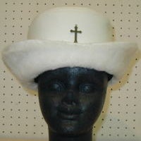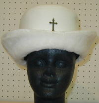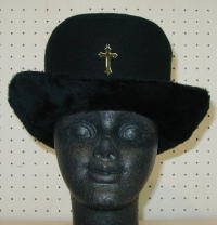 The brim is made of fur, while the rest is made of felt. There is a cross part in the center of the crown.