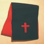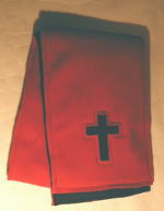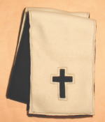 This reversible hem is cut cleanly. The top fabric is cut crosswise, revealing the contrasting colored fabric underneath.