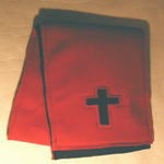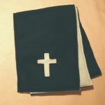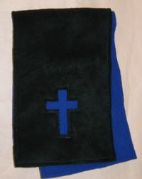 ☆切りっぱなし仕立てのリバーシブル。上の生地がクロスにカットしてあり、その下の配色生地が見えます。