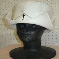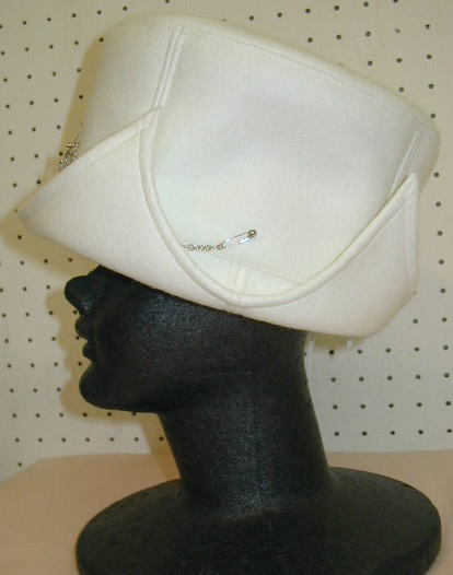 ☆つばは四隅がとがったデザインで、回りにワイヤーが入っているので、自由に形を変えることが出来ます。安全ピン付のクロス付チェーンも付いているので、好きな位置に着けられ、何通りにもかぶることが出来ます。