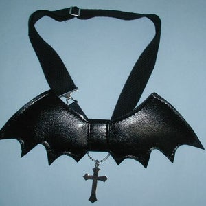 Bat-shaped short tie. Type A has a hanging cross design, while Type B has a central design. Easy to put on by simply hooking the hook.