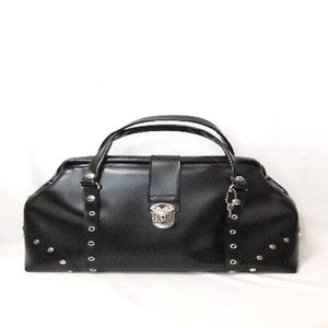 A durable and easy-to-use doctor bag that opens wide with metal fittings.