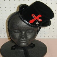The crown (top part) is made of suede and the brim is made of synthetic leather. A cross is sewn on the front of the crown.