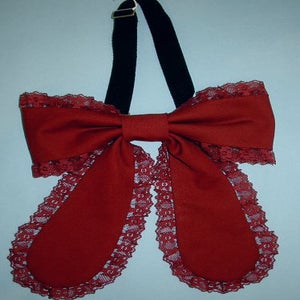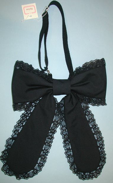 リボンの回りに同色のレースがついています。下に下がった部分が短いタイプなので、カジュアルにも着こなせます。ホックを引っかけるだけで簡単装着できます。