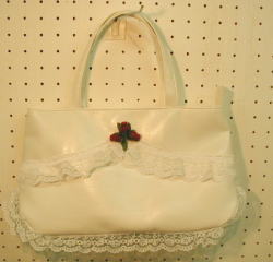 ☆レースが二段付いていて、上の段の中央にバラが3個付いています。開閉部分はファスナーが付いています