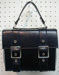 This box-shaped bag has a core. The gusset is held in place by rivets. It closes with a magnet under the belt buckle. It also comes with a 2cm wide belt with a snap hook, so it can be used as a shoulder bag.