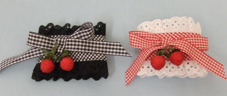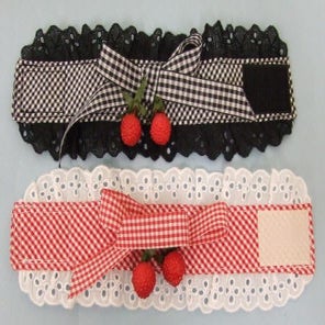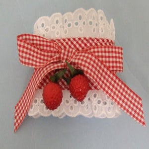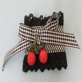 This wristband features gingham check, cotton lace, ribbon, and strawberries. Size: One size fits most (for wrists around 16cm) .