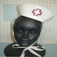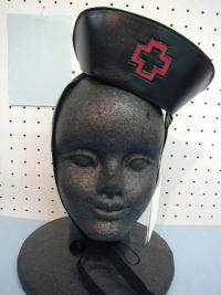 The mini nurse's cap is here! The red part of the cross is sandwiched between synthetic leather.