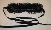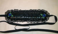 回りに2段真ん中に1段レースが付いていて、両はじにバラが付いています。