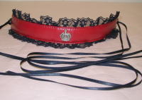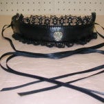 上下にレースが挟んであり、正面中央にはティアラパーツが付いています。鳩目に通したリボンを後ろで結ぶデザインですが、リボン側を前にしてもok!ヘットドレスとしても使用可。