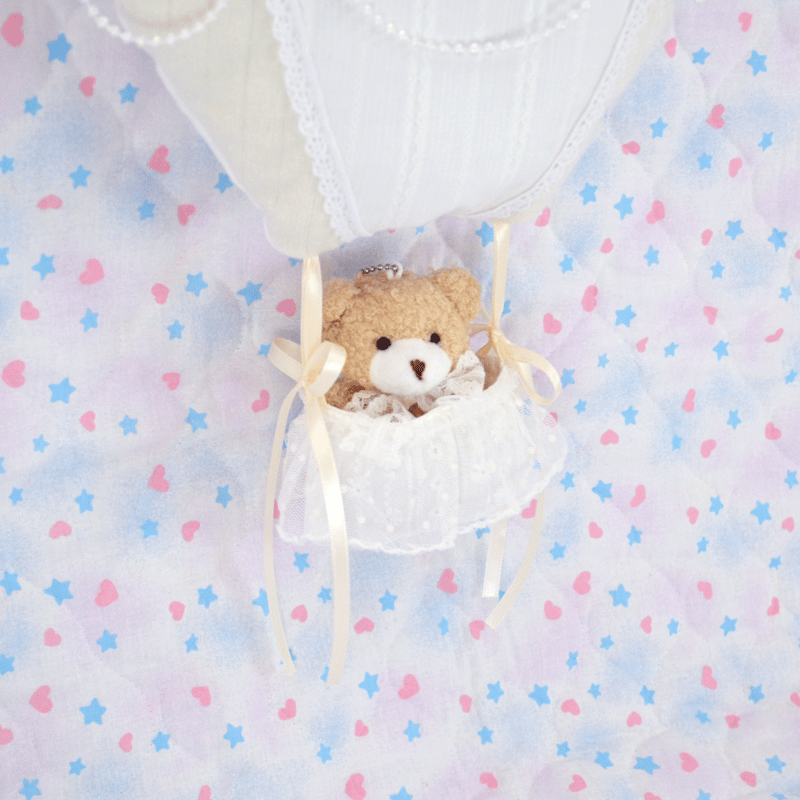 -04: blue bear and bunny print x yellow x white lace x sax blue straps x light pink ribbon x pink basket x white pearl strand