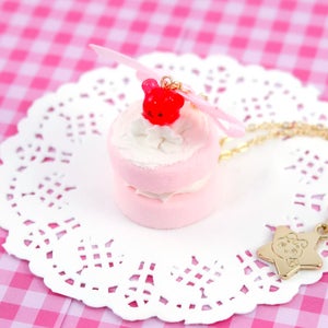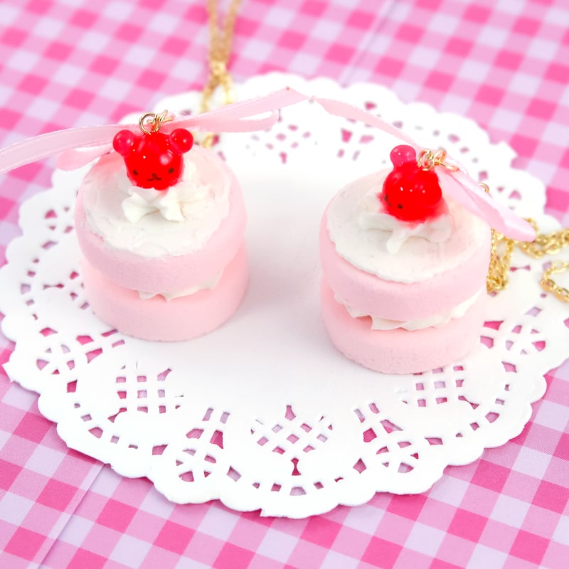 "A delicious pink cherry cake with cream and a beary cherry on top~ Each cake has a bear with a hand-painted face and is coated with a water-resistant layer for protection~"