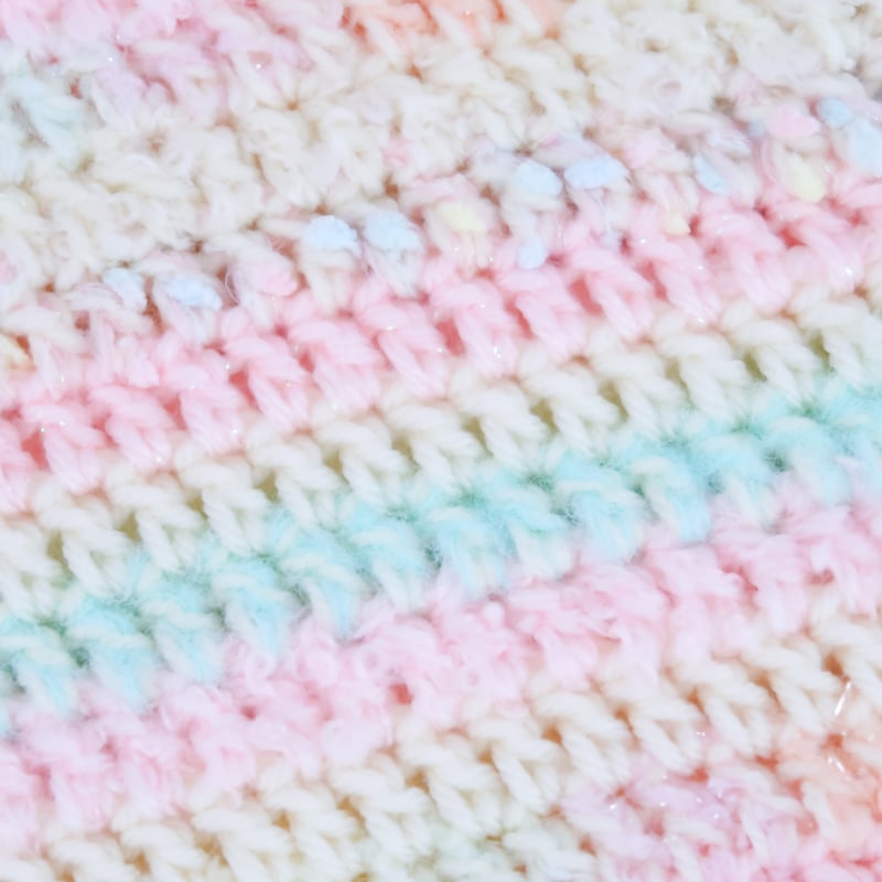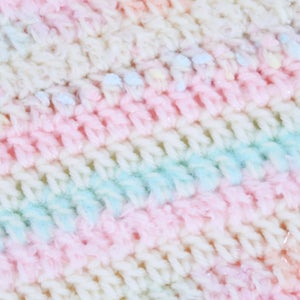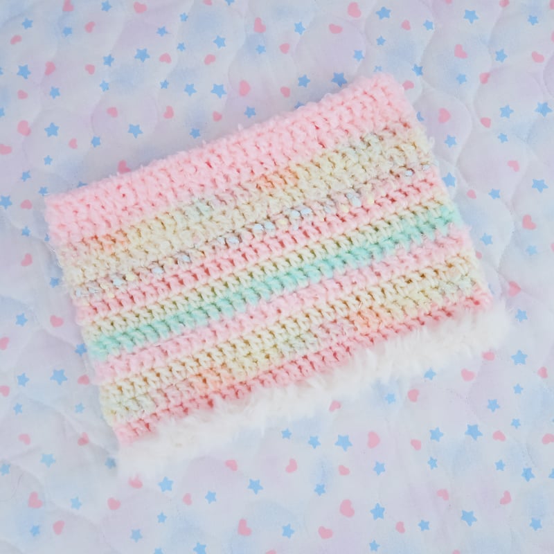 -Color 04: pink/yellow/mint green variegated x white faux fur trim