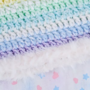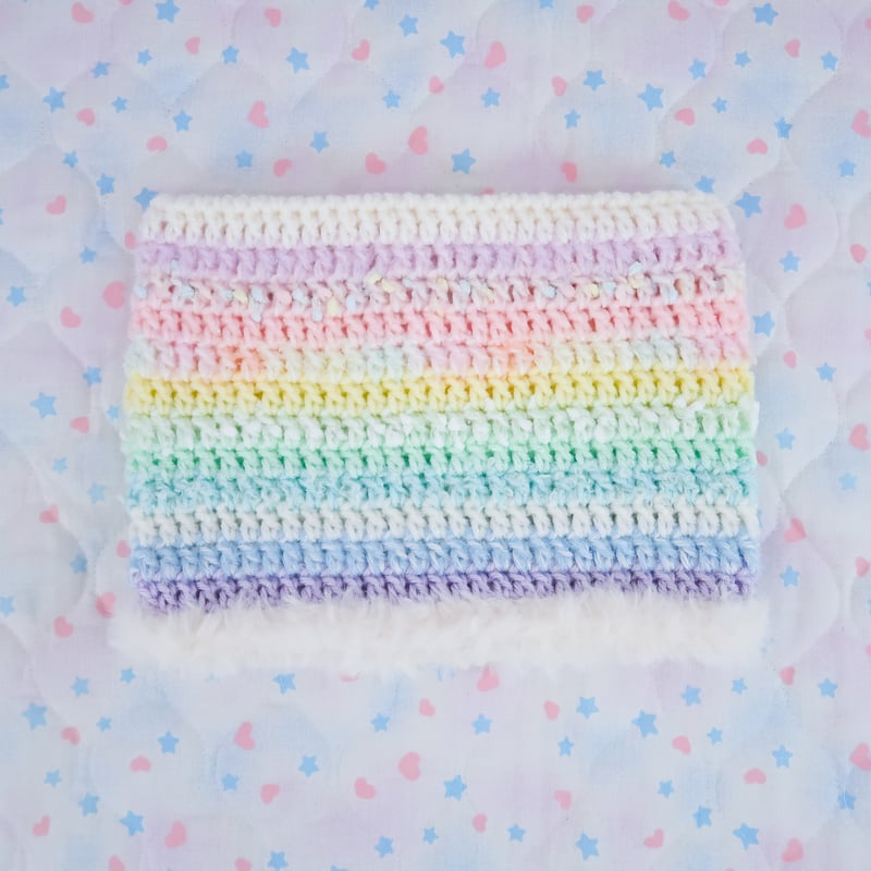 "A crocheted pastel cat ear hat~ The opening to the hat features fluffy soft faux fur~"