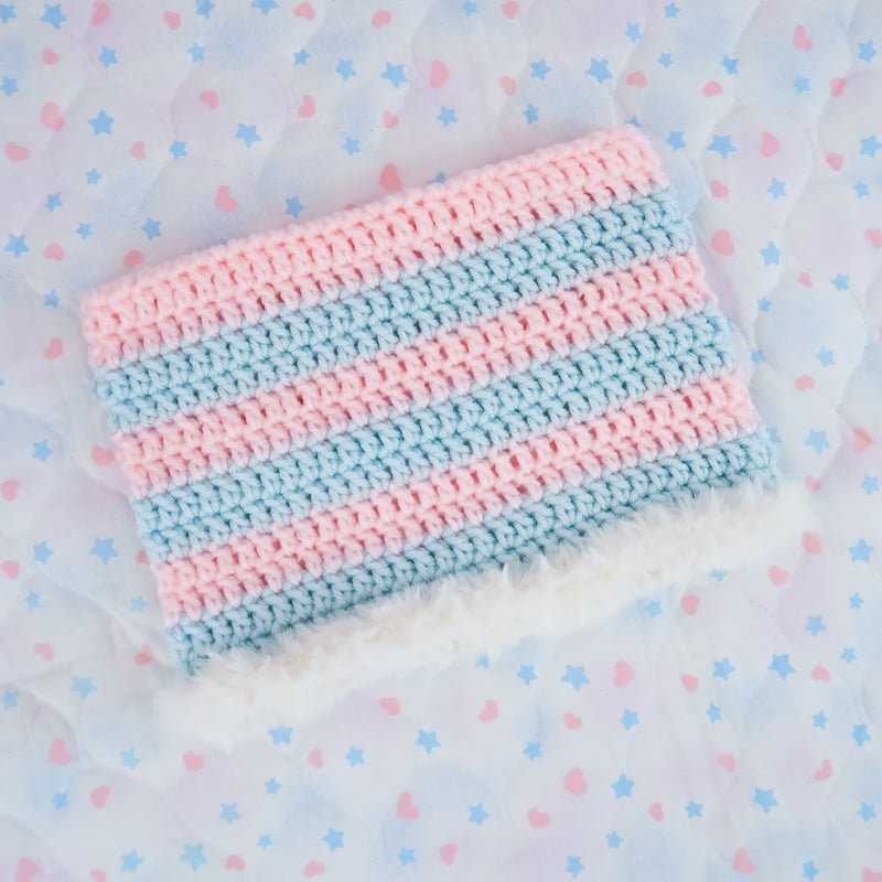 -Color 01: pink/sax blue stripes x white faux fur trim