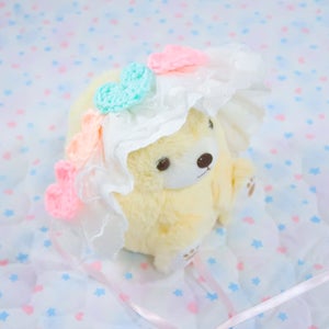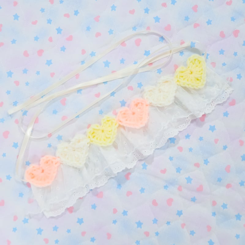 -04: white lace x ivory/yellow/peach hearts x ivory ribbon ties