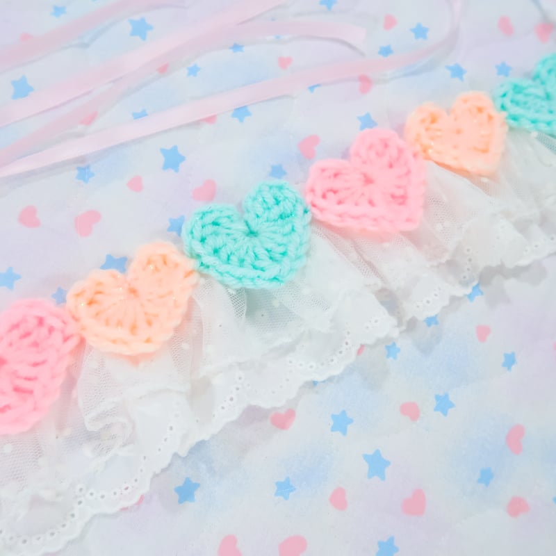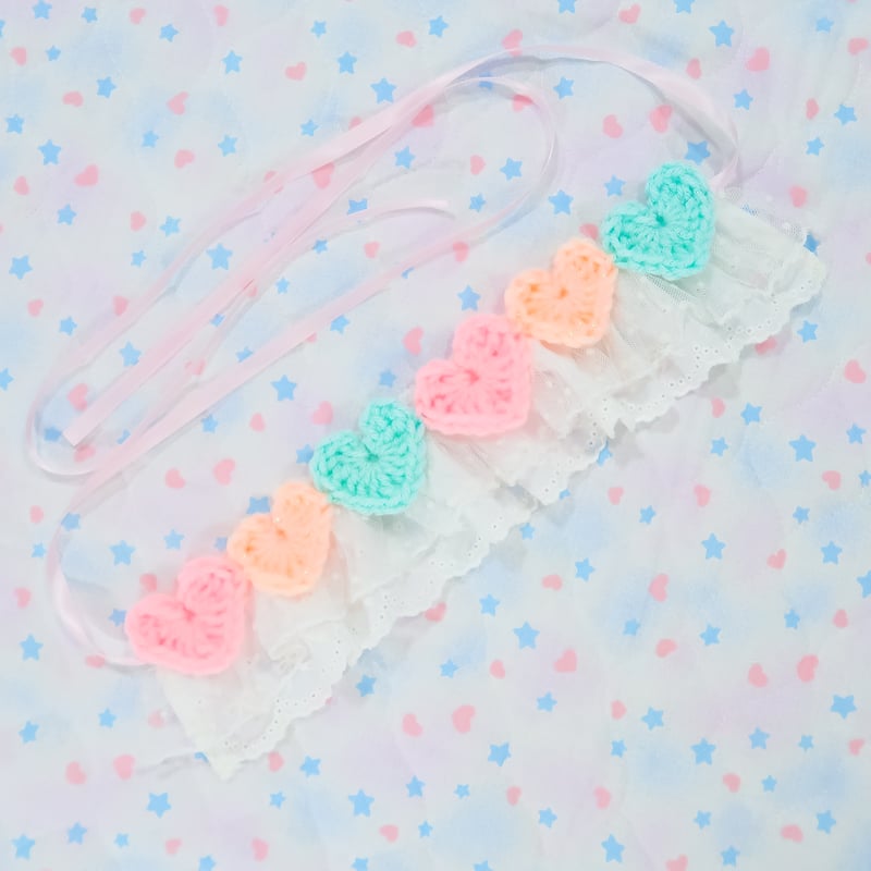 -01: white lace x pink/peach/mint green hearts x pink ribbon ties
