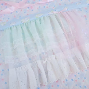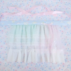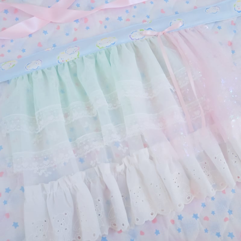 "A lacey apron made from different sheer fabrics~ It features heart lace and teddy bear trim on the bottom~"