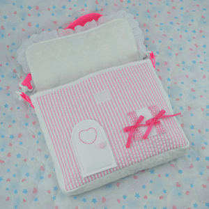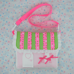 -pink/white gingham x mint green/pink dot roof x white cotton lace x pink straps/ribbons