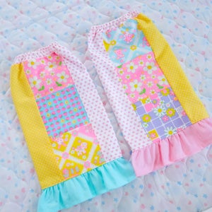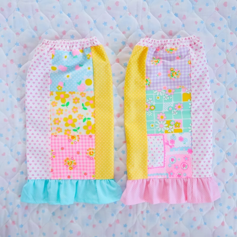 "A colorful set of leg warmers made from several different patterned fabrics~ They can be worn from either side~"