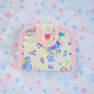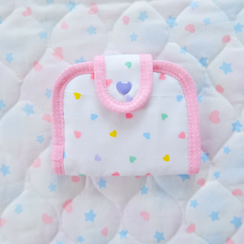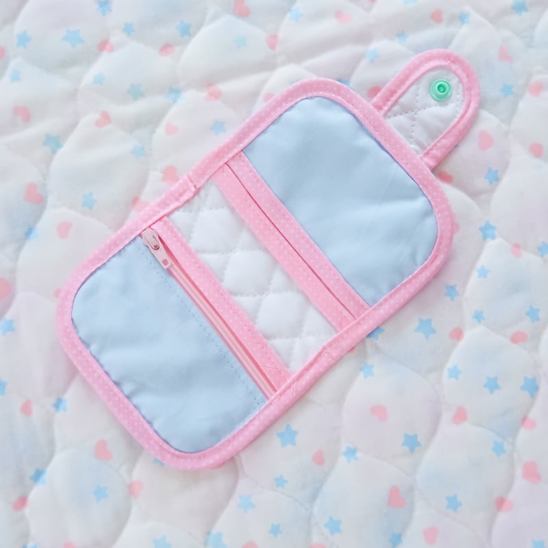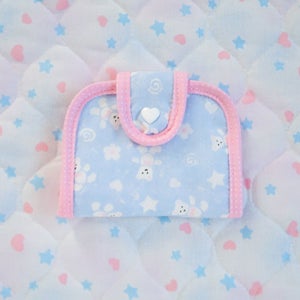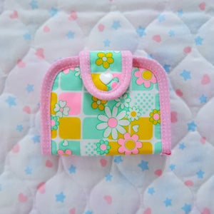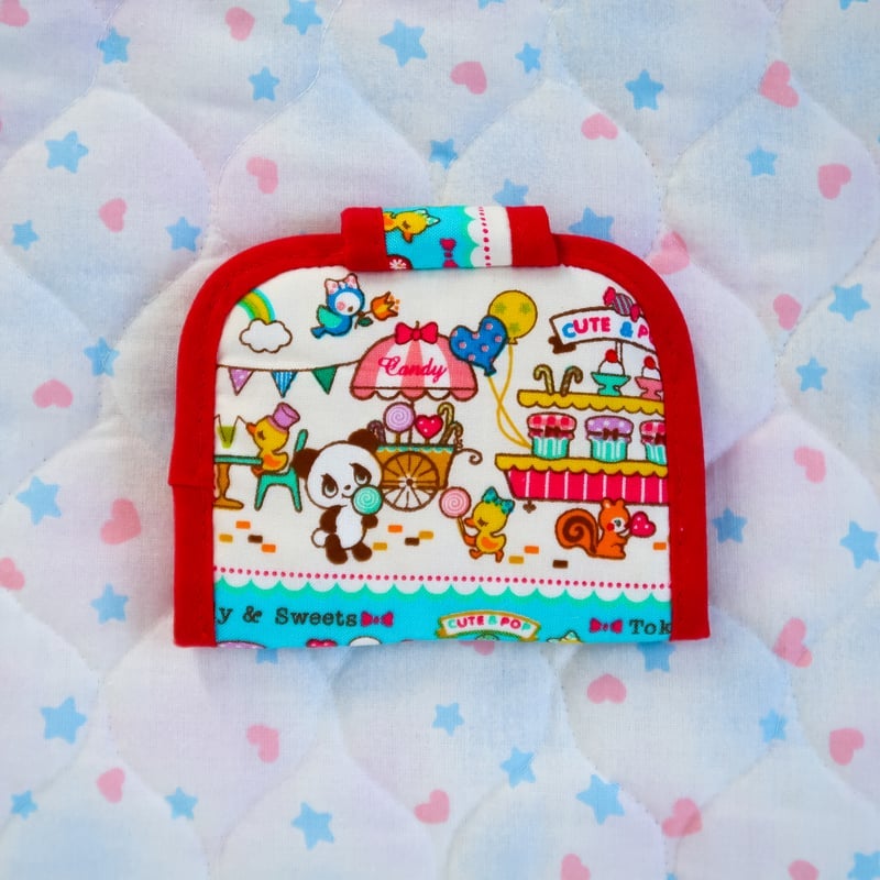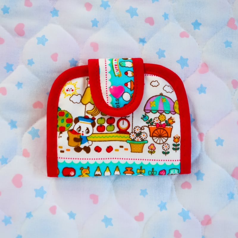 "A wallet made from multiple fabrics that can hold cards and coins for you~"