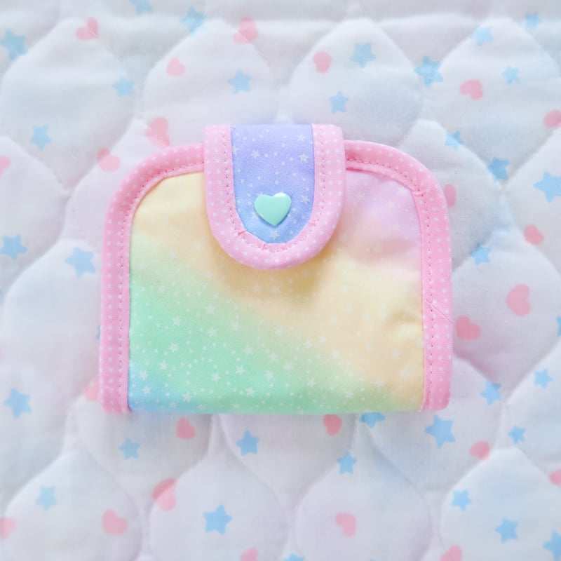 -01: rainbow gradient print x pink/white fine dot trim x mint green heart button x silver keychain clasp