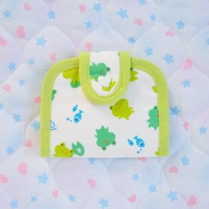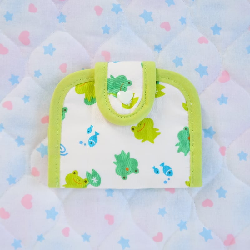 -08: offwhite frog print x yellow-green trim x white heart button x silver keychain clasp