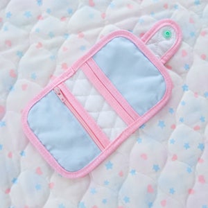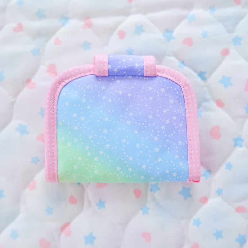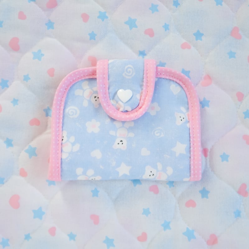 -04: pink Little Twin Stars print x pink/white fine dot trim x sax blue heart button x silver keychain clasp