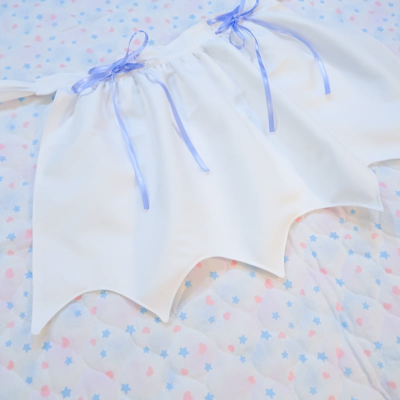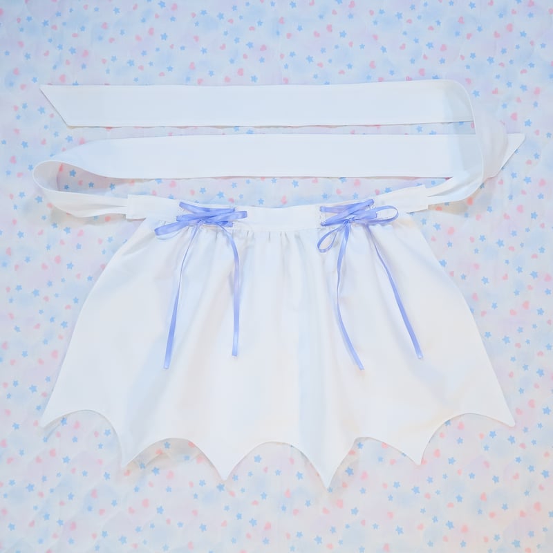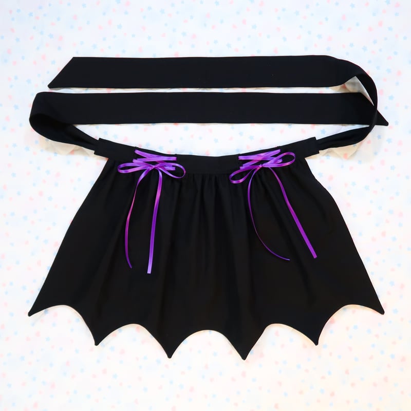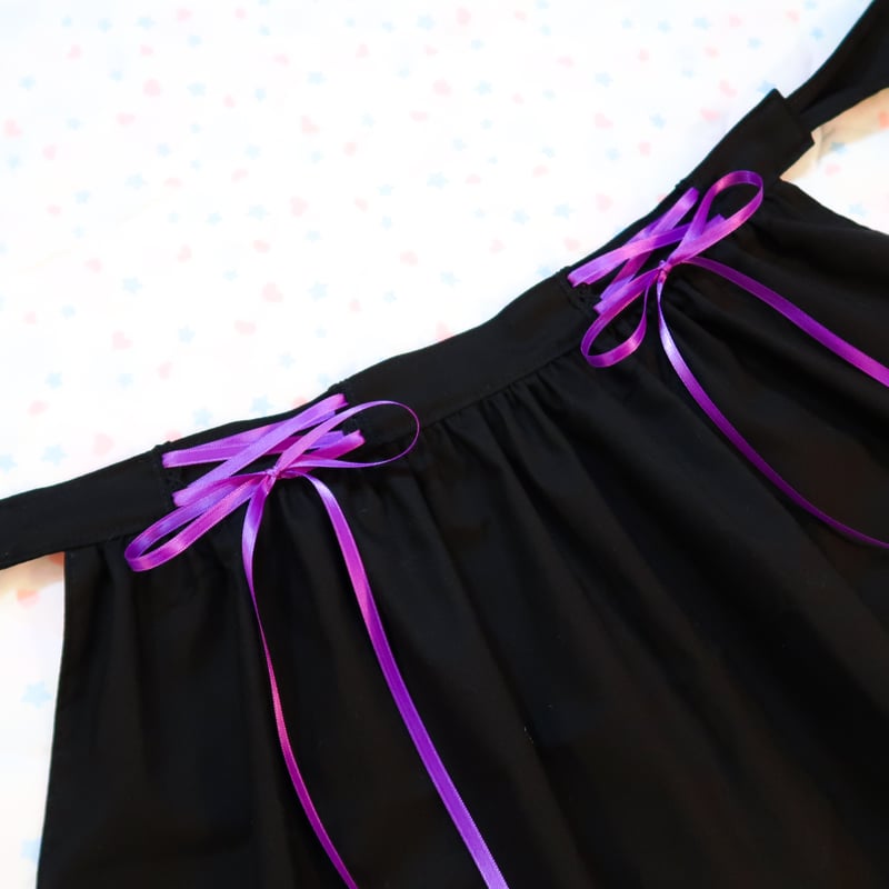 "A spooky apron with satin ribbons fed through lace~ The satin ribbons are removable so they are able to be switched to another color to compliment your coordinate~"