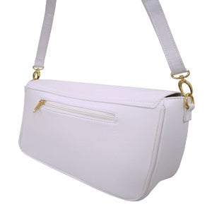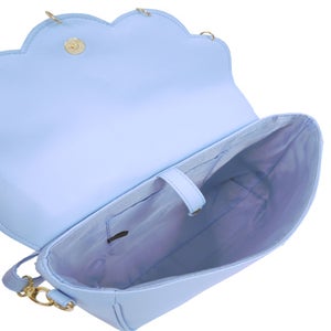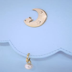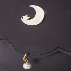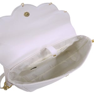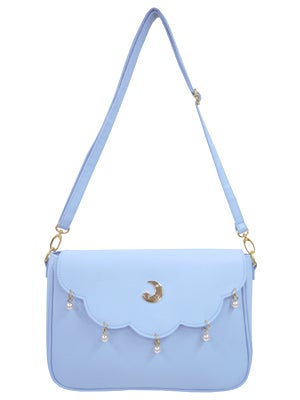 This romantic shoulder bag features scalloped pearls reminiscent of moondrops!