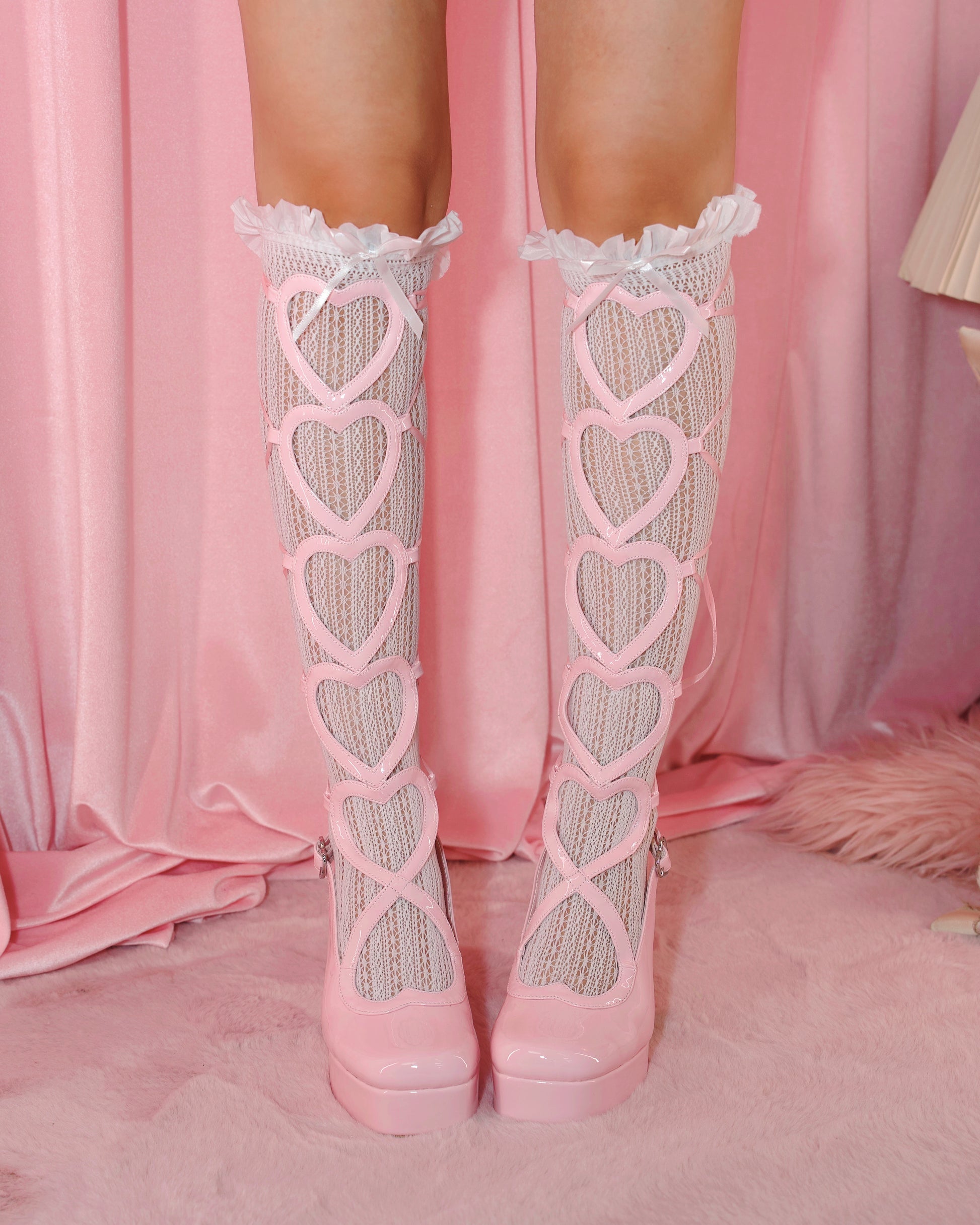 Vina of the Valley ~ "Dear Valentine" Knee High Heart Platform Heels