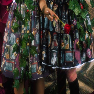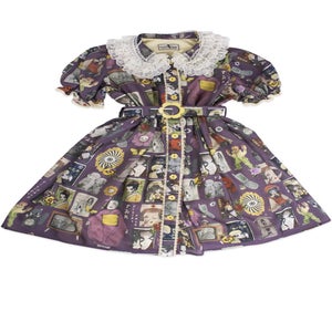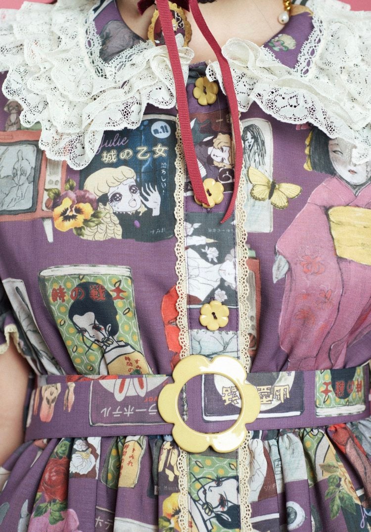 - The dress is made of a soft texturized fabric blend which is digitally printed- It has a full elastic waist that adapts to many sizes and bust types- Includes a flower shaped belt buckle and flower shaped buttons