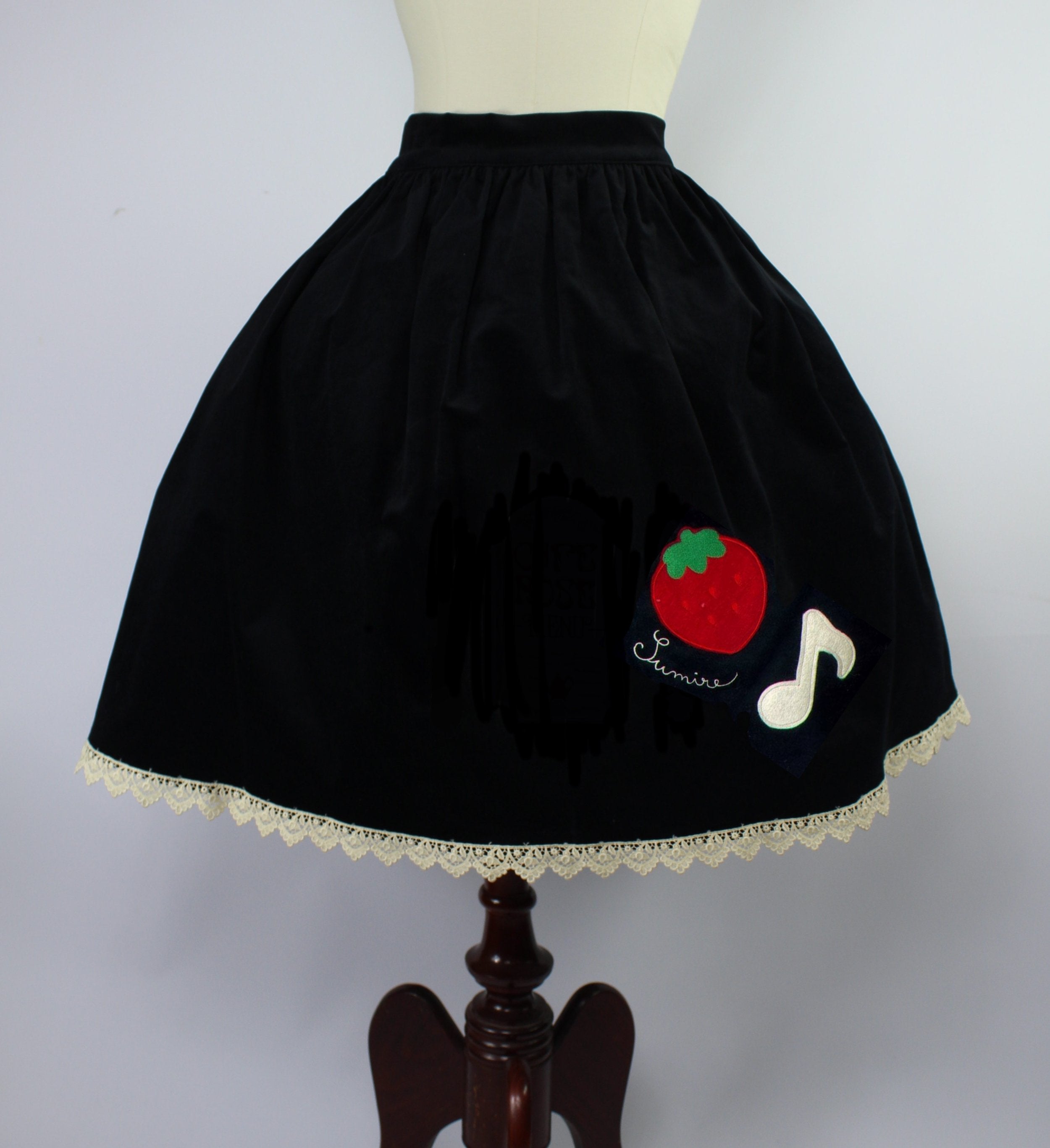 The Girl from the Alps Skirt · Red Strawberry Applique in black.