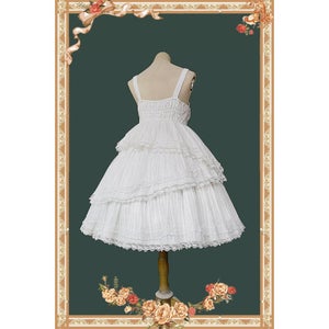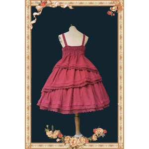 [Design notes] Lined. Jacquard fabric has a rose lattice pattern. This JSK is shirred on the back and the Bust/Waist can stretch a few centimeters larger than the listed Bust and Waist measurements.